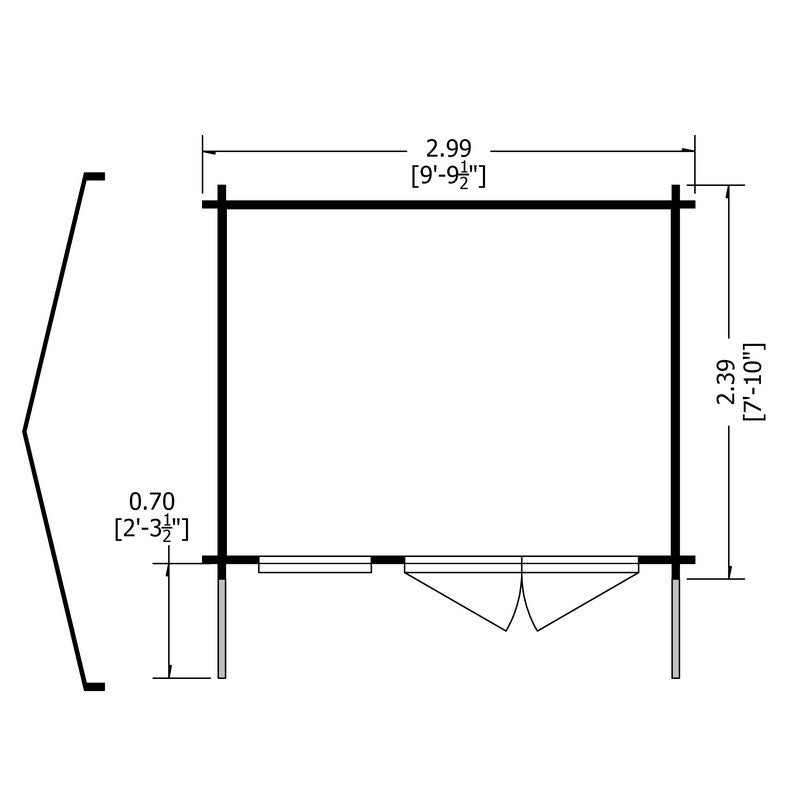Please note - size 7' 10" x 9' 9" is approximate and based on a bird's eye view of the structure, including the roof.