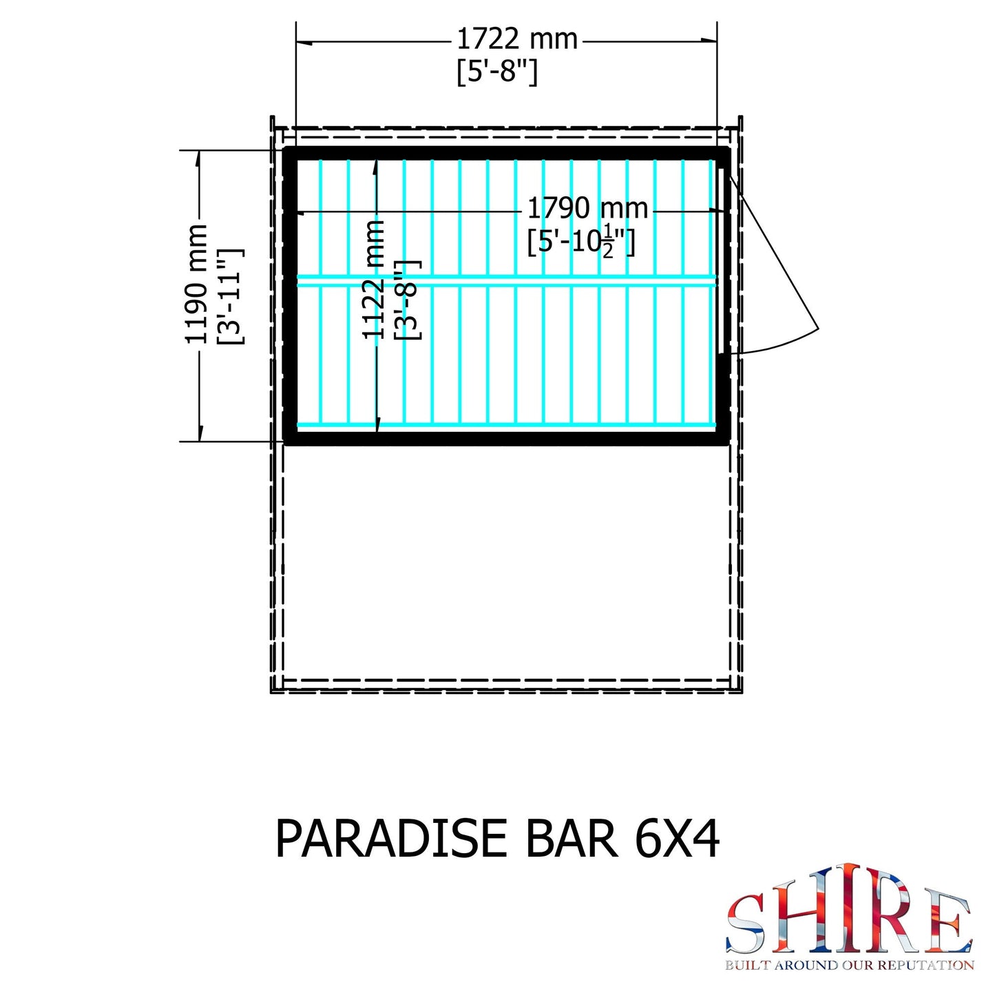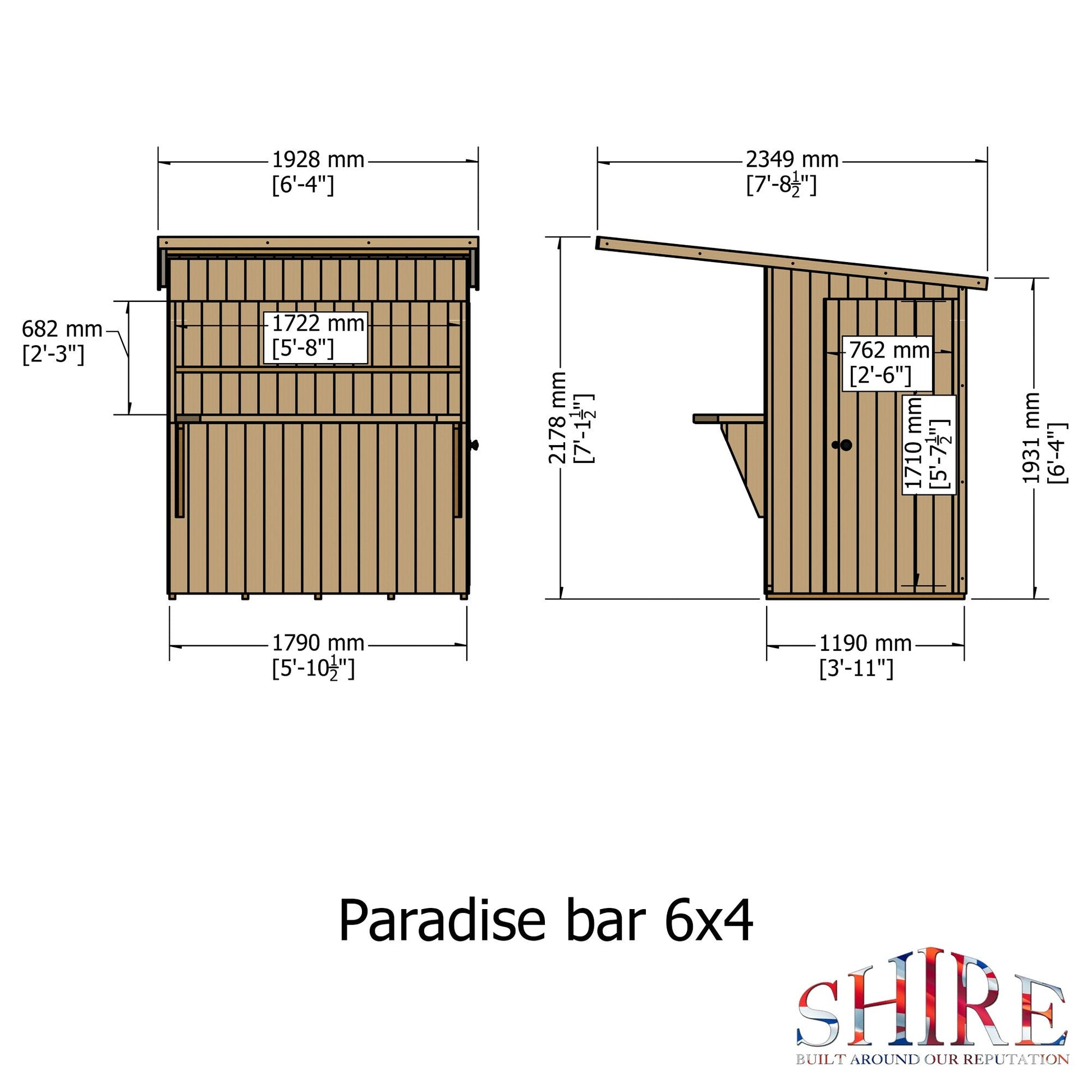 Paradise 3' 8" x 5' 10" Pent Garden Bar - Premium Dip Treated Shiplap