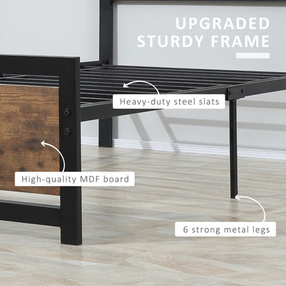 Single Metal Bed Frame Slat Support Bedstead Base w/ Headboard & Footboard