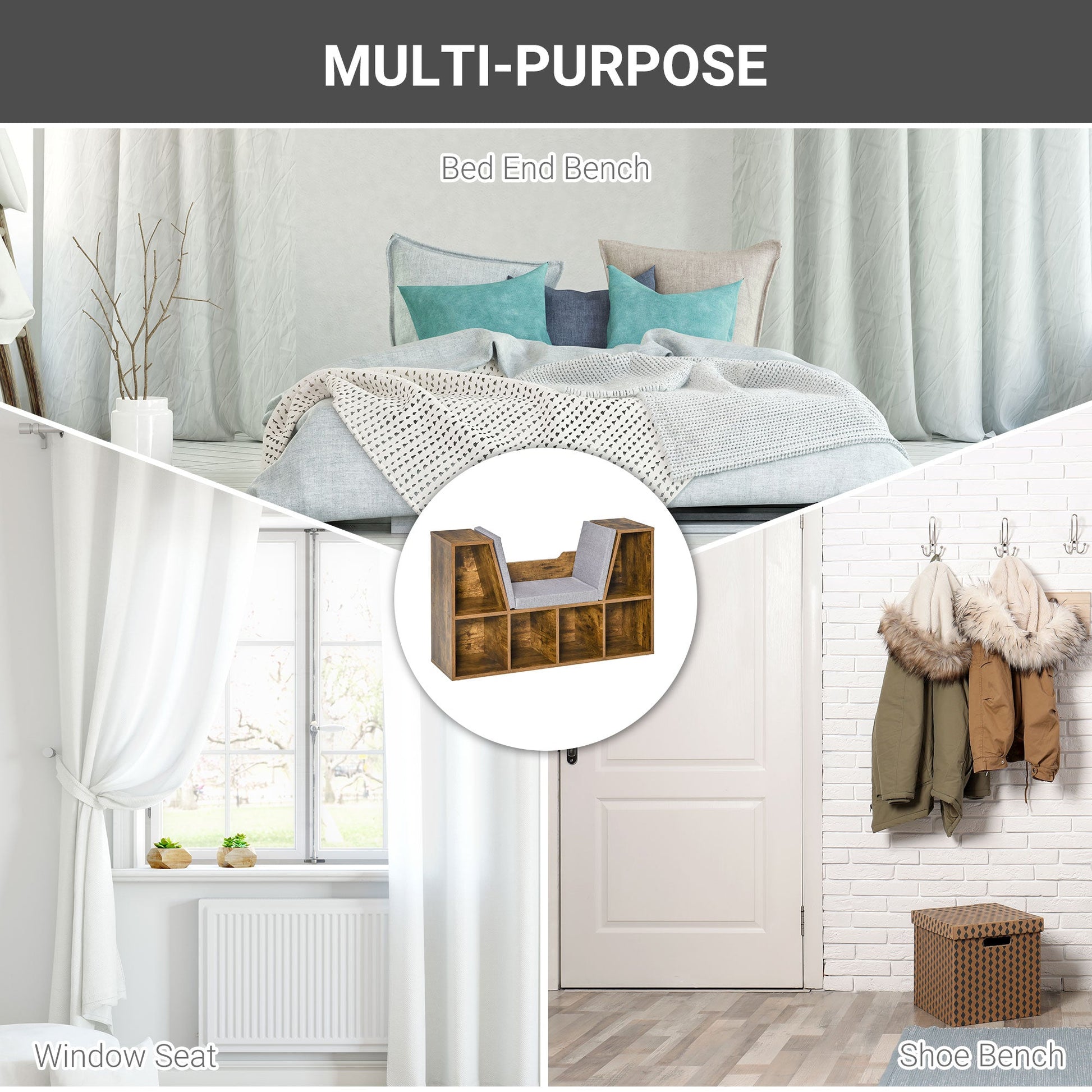 You can now stop the search for the best reading spot at home thanks to this HOMCOM bookcase seat. Made from particle board for strength and reliability over the years, the base is crafted into a design which features six open cubes for handy storage, with a curved cut-out seat and soft padded cushion to allow you to comfortably immerse your head into your book for hours. Sleek rustic brown in colour, it will sit in any style room with ease in a unique design.