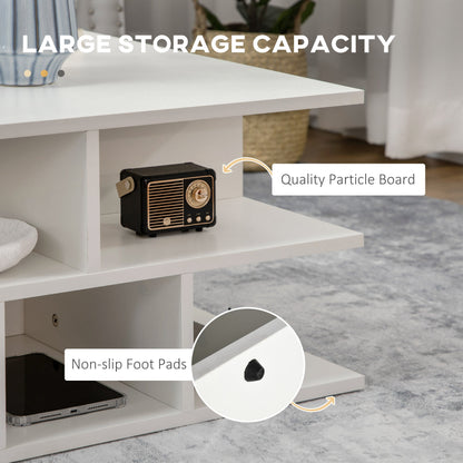This multi-storage cube coffee table from HOMCOM can hold everything you need in your living space. A large table top to give plenty of holding room, there's a plethora of shelves beneath which offer more discreet holding and display room. Made from particle board, this low coffee table is durable, with a protective melamine coating. Completed with nine handy foot pads.