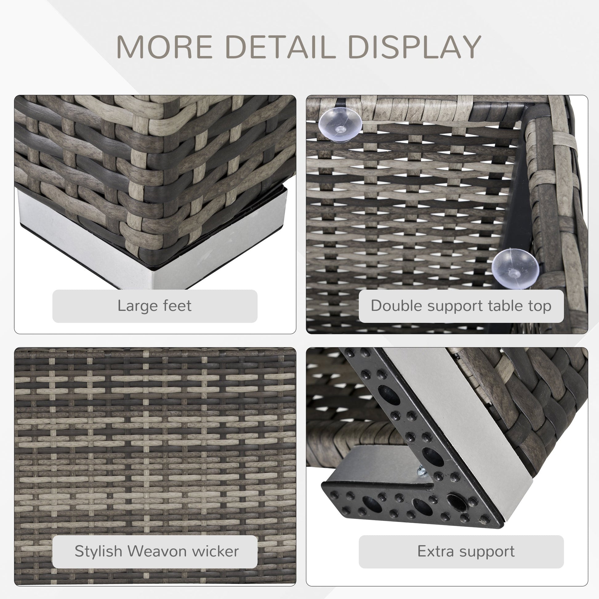 This forever on-trend square table, from Outsunny, will bring an effortlessly elegant touch to your garden and outdoors. The steel frame ensures a solid structure, wrapped PE wicker so extra durable and resistant to mild weather damage. It's fitted with a tempered glass table top, giving you a safe holding spot which can be wiped clean easily. It's finished with foot pads for floor protection.