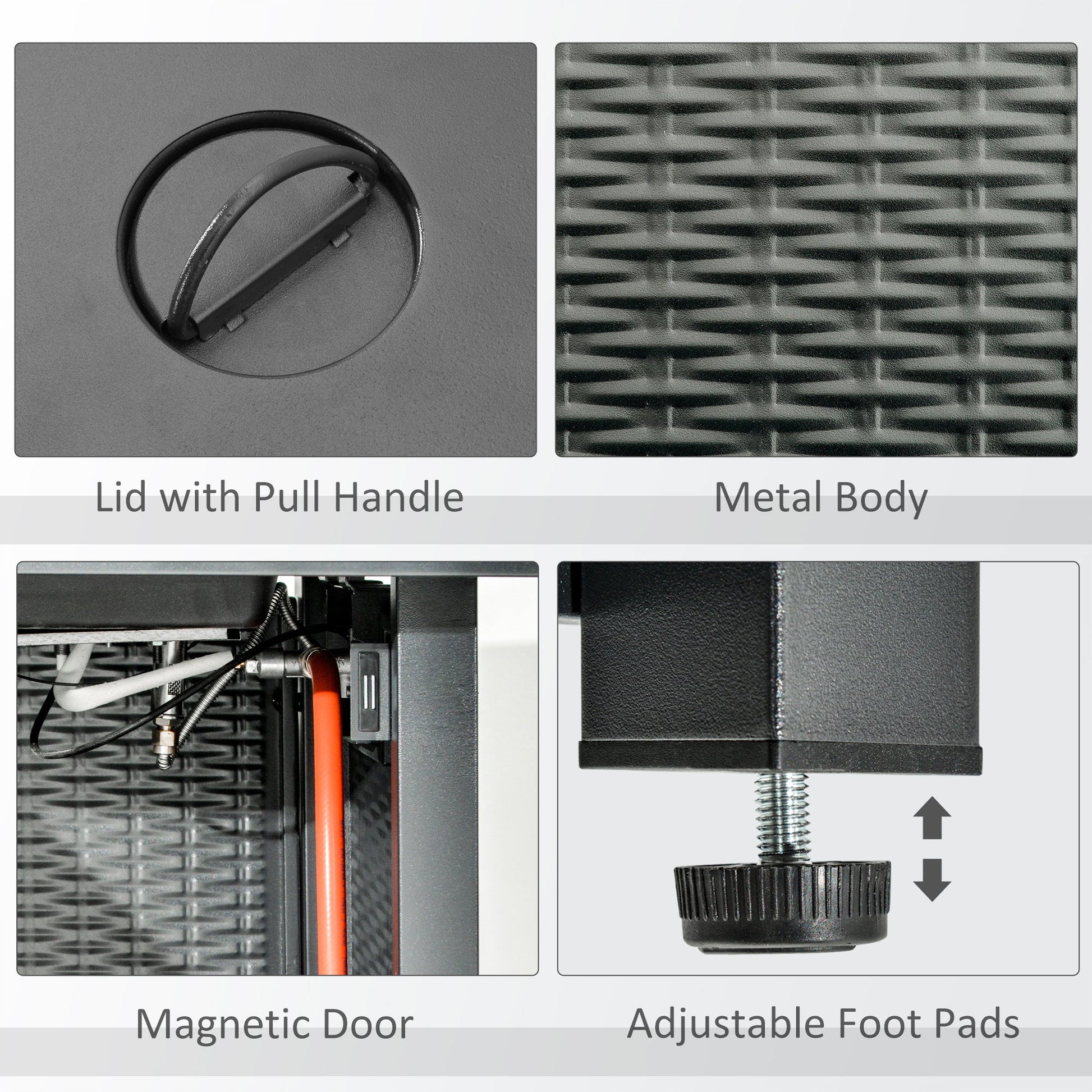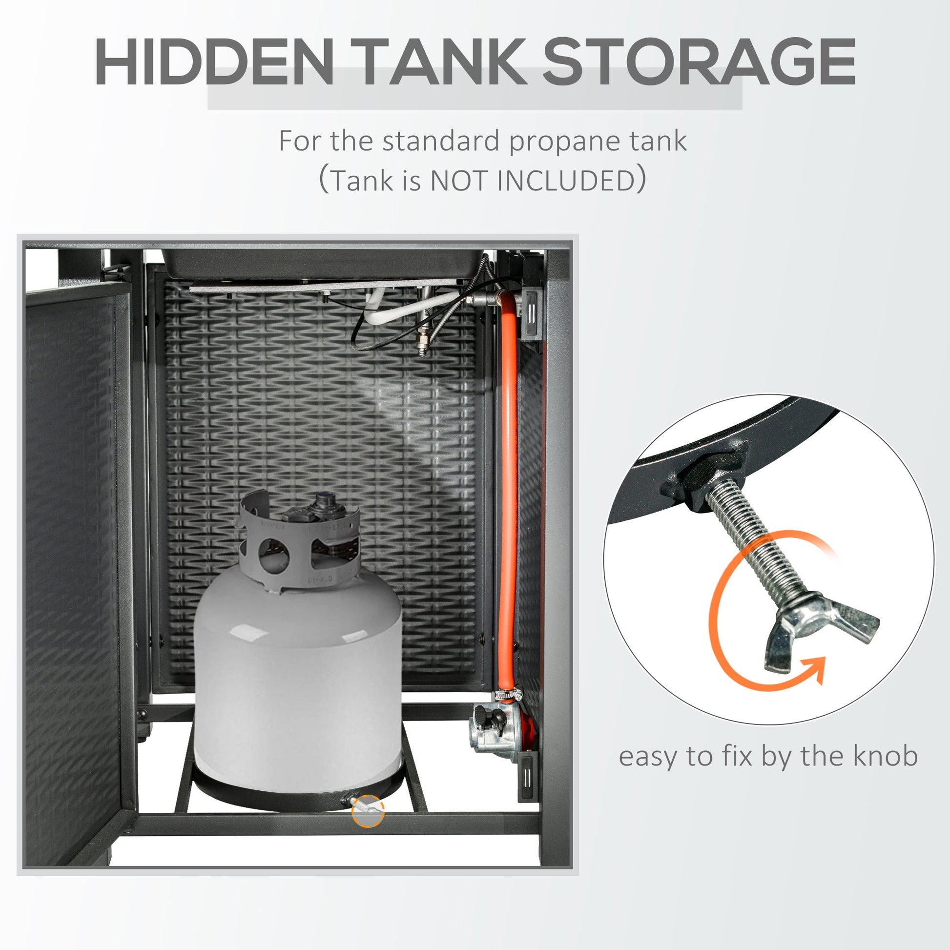 Enjoy the ultimate garden ambiance all year-round with this Outsunny fire pit table. The rattan design is stylish, with an inner compartment to hold propane tank safely. The 40000 BTU burner means you can enjoy a flame without worrying about messy ashes. Whether it's on a porch, patio, or in your garden, our outdoor fire pit is a great addition to your home.