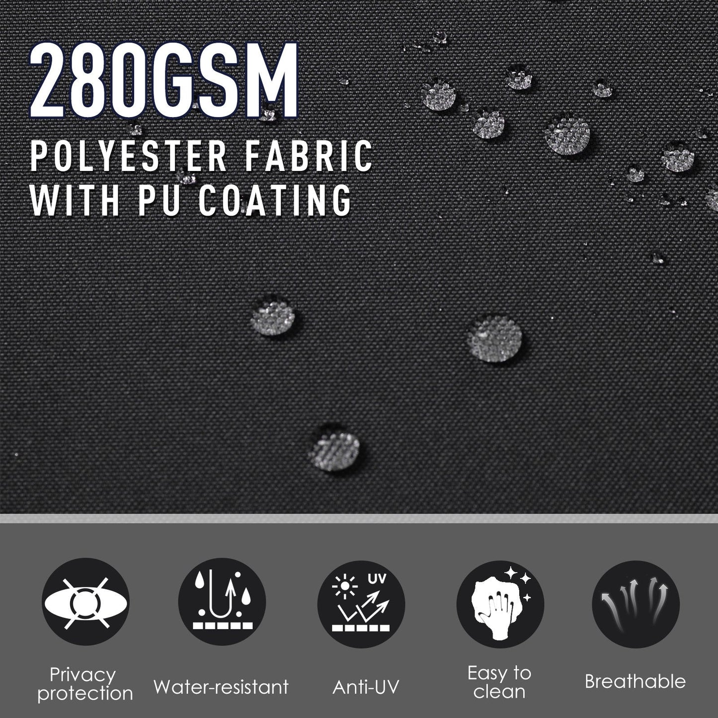 - 280gsm polyester canopy with PU coating is tough and resistant to mild weather