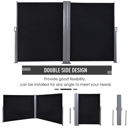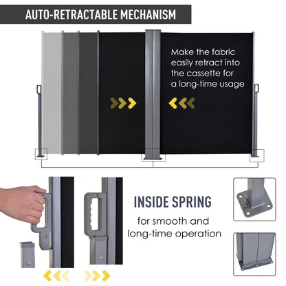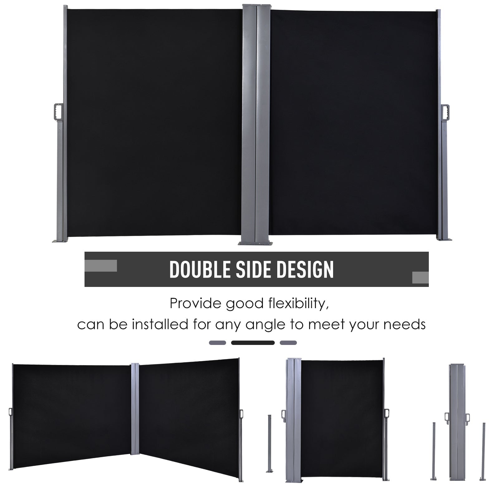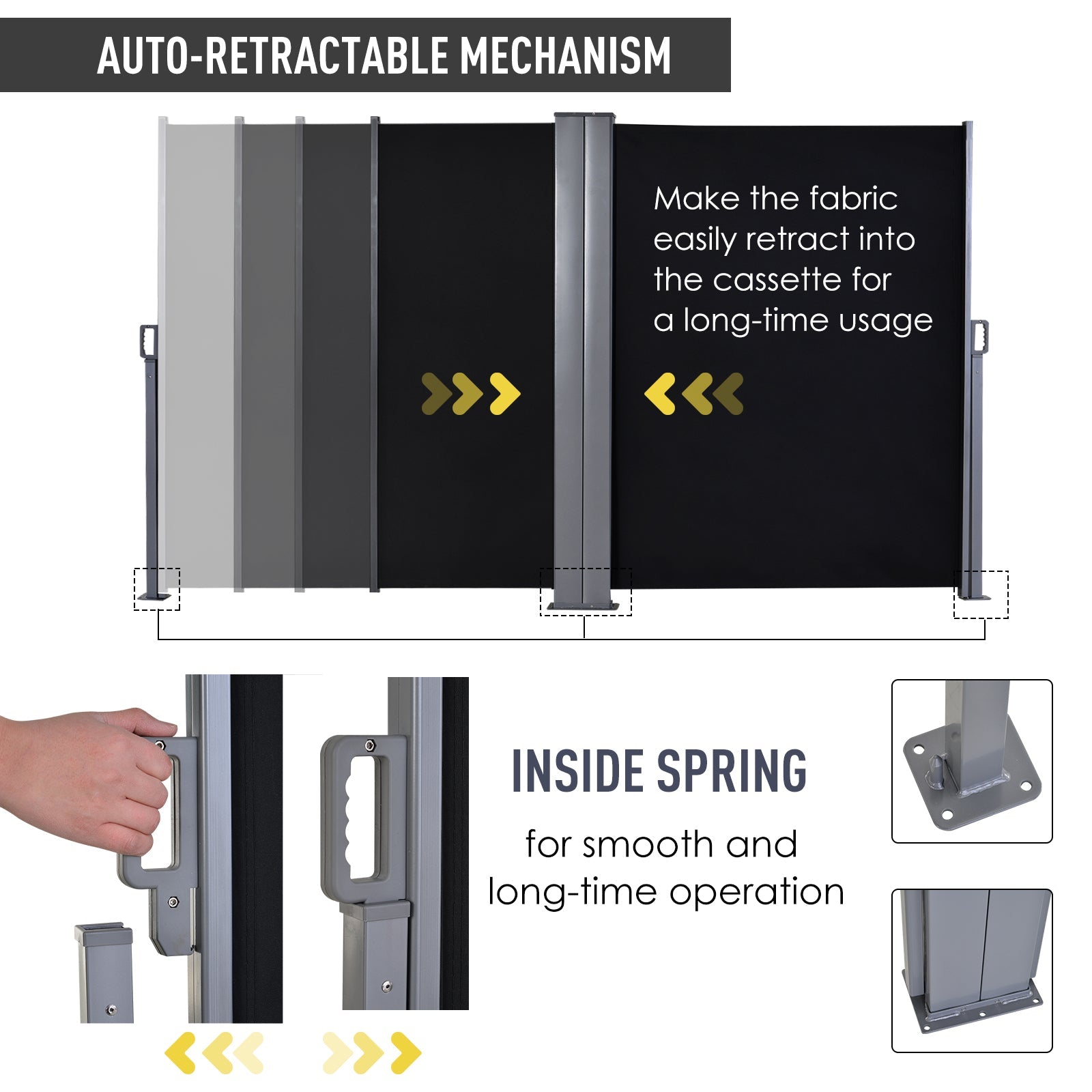 Prevent the glaring sun and blustering winds disturbing you outdoors with this beige double side awning from Outsunny. Treated all over for protection outdoors in all mild weather conditions, the steel base frame is tough and strong to ensure it is a lasting addition in your garden, with it attaching securely and easily to cement or solid wood for quick set up. The extra-long canopy, made from 280gsm polyester in black, features a PU top coating for weather-resistance, with it pulling out smoothly and fixating in place with the clip lock handle – a simple operation which can be used by both adults and children. All-day protection guaranteed, wherever you are.