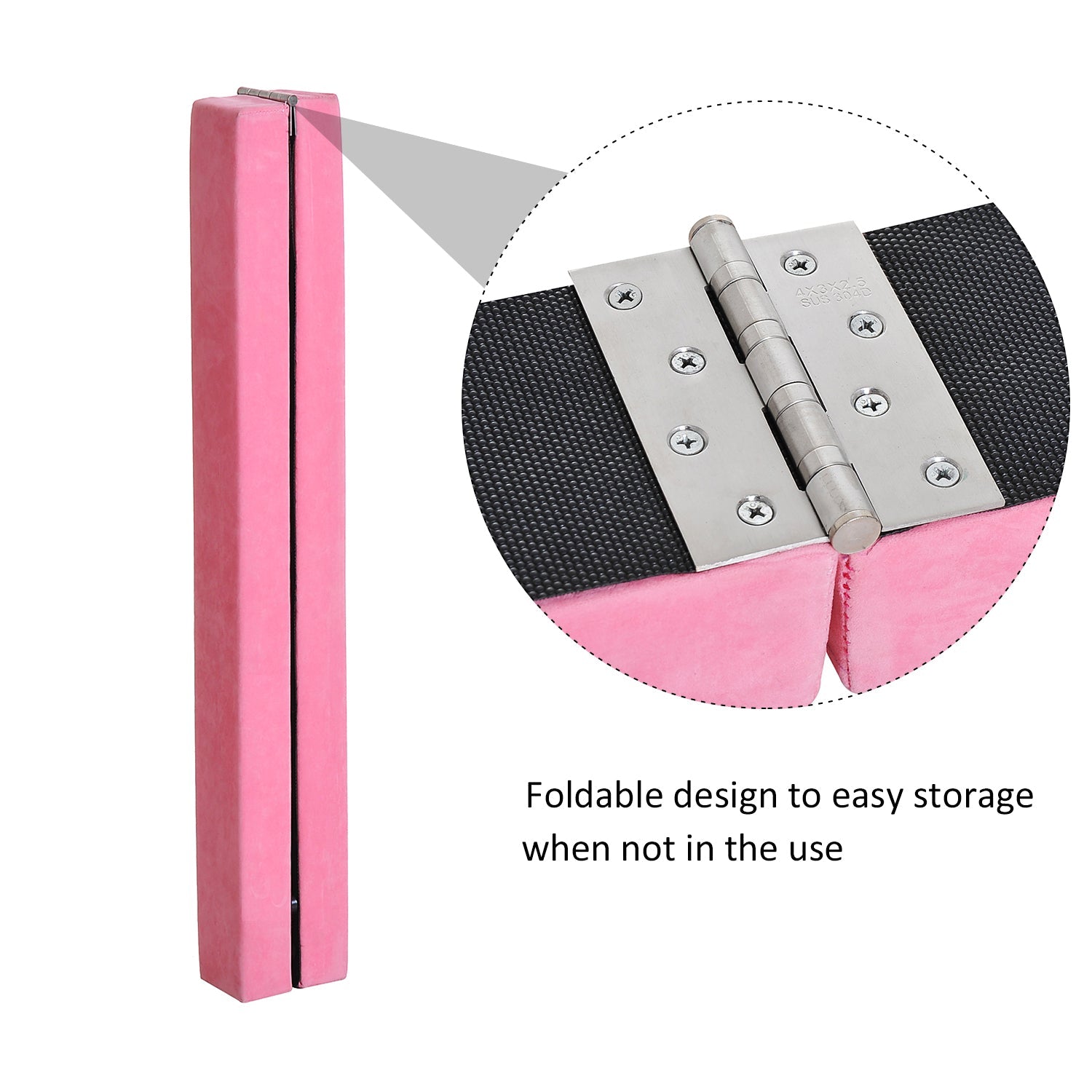 Suede Upholstered Wooden Folding Balance Beam Trainer Pink