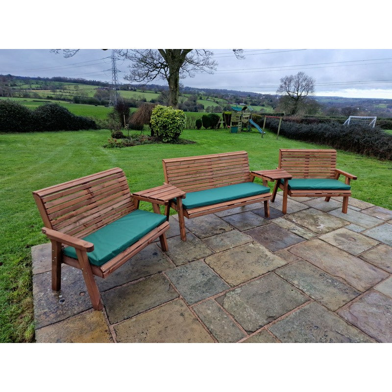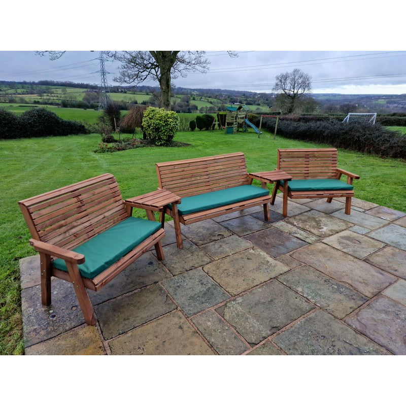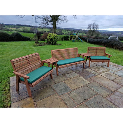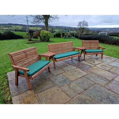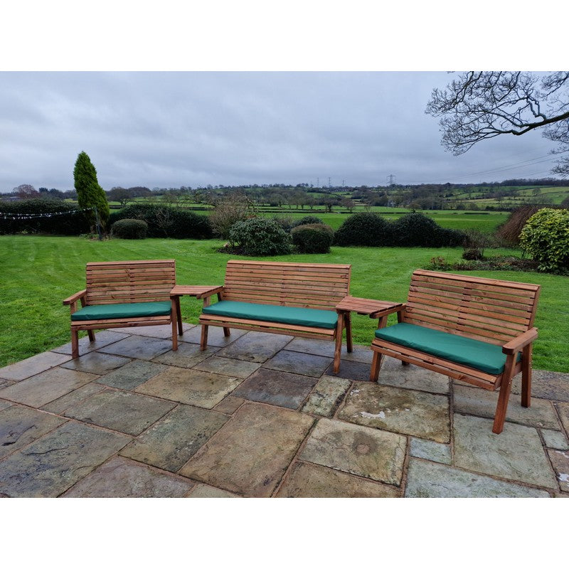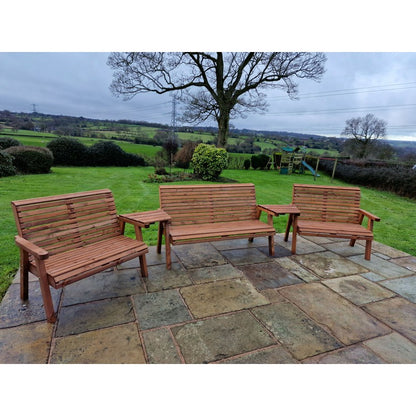 A truly stunning garden set,This beautiful arrangement has been built by Brit'sh craftsmen in this unique style using the finest Swedish Redwood. The wood has a base treatment with anti-fungal, anti-mould and UV protection. You will need to re-treat annually to prevent from rot. This furniture is eco-friendly because we only use timber from Scandinavian forests that are protected by the Forestry Stewardship Council (FSC), where trees are cut down responsibly and many more are replanted in their place. We go to the extra effort of having the timber pressure treated means that it is protected against the elements for up to 20 years. A lot of the garden furniture on the market nowadays is made to last for as little as three or four years, therefore, our products will last nearly four times as long, putting less of a strain on this beautiful planets natural resources. This product is hand made and is made from wood which is a natural product, so there will be natural blemishes like knots and veins through the grain, and slight imperfections like cracks or splits in the wood may occur with changes in the weather, these natural characteristics are due to the wood losing moisture during warm and dry seasons, and during exposure to intense sunlight. During colder and wetter seasons the wood will uptake moisture again which will reduce these splits or cracks. This is of no detriment to the product. We try our best to get rid of splinters and rough edges but we may not eliminate all of them.