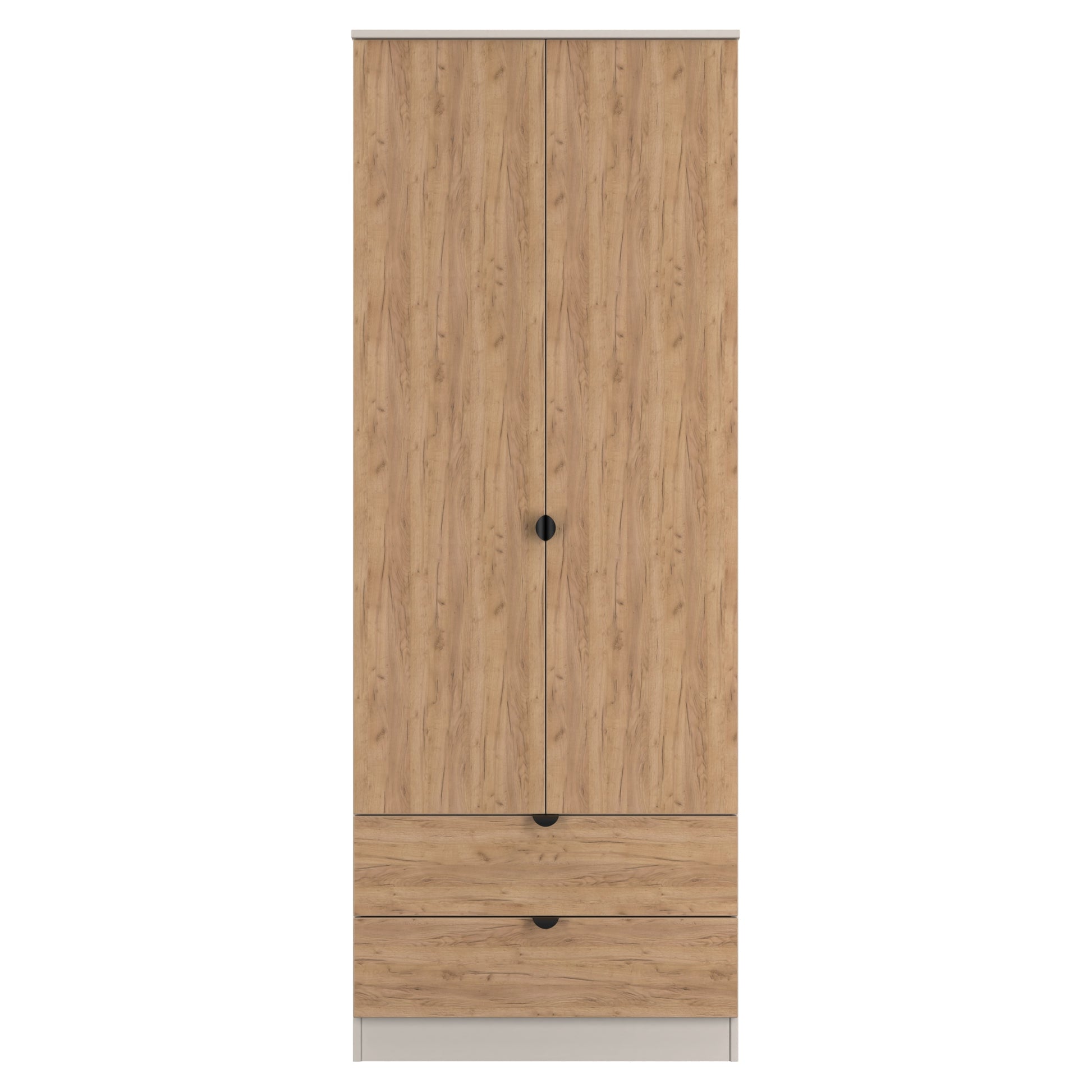 Bora Tall Wardrobe Oak & Off-White 2 Doors 2 Drawers 196cm