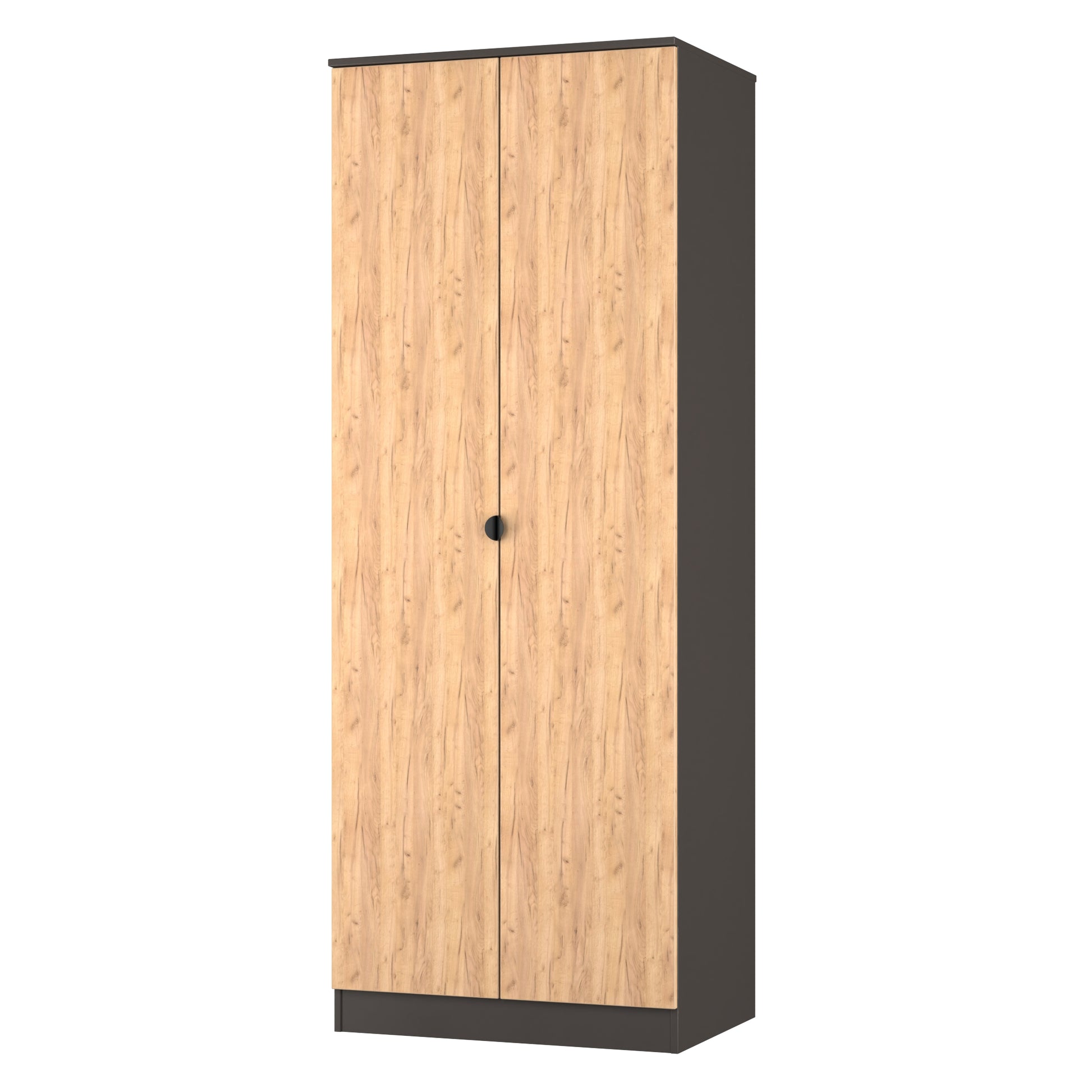 Bora Tall Wardrobe Oak & Dark Grey 2 Doors 1 Shelf 196cm