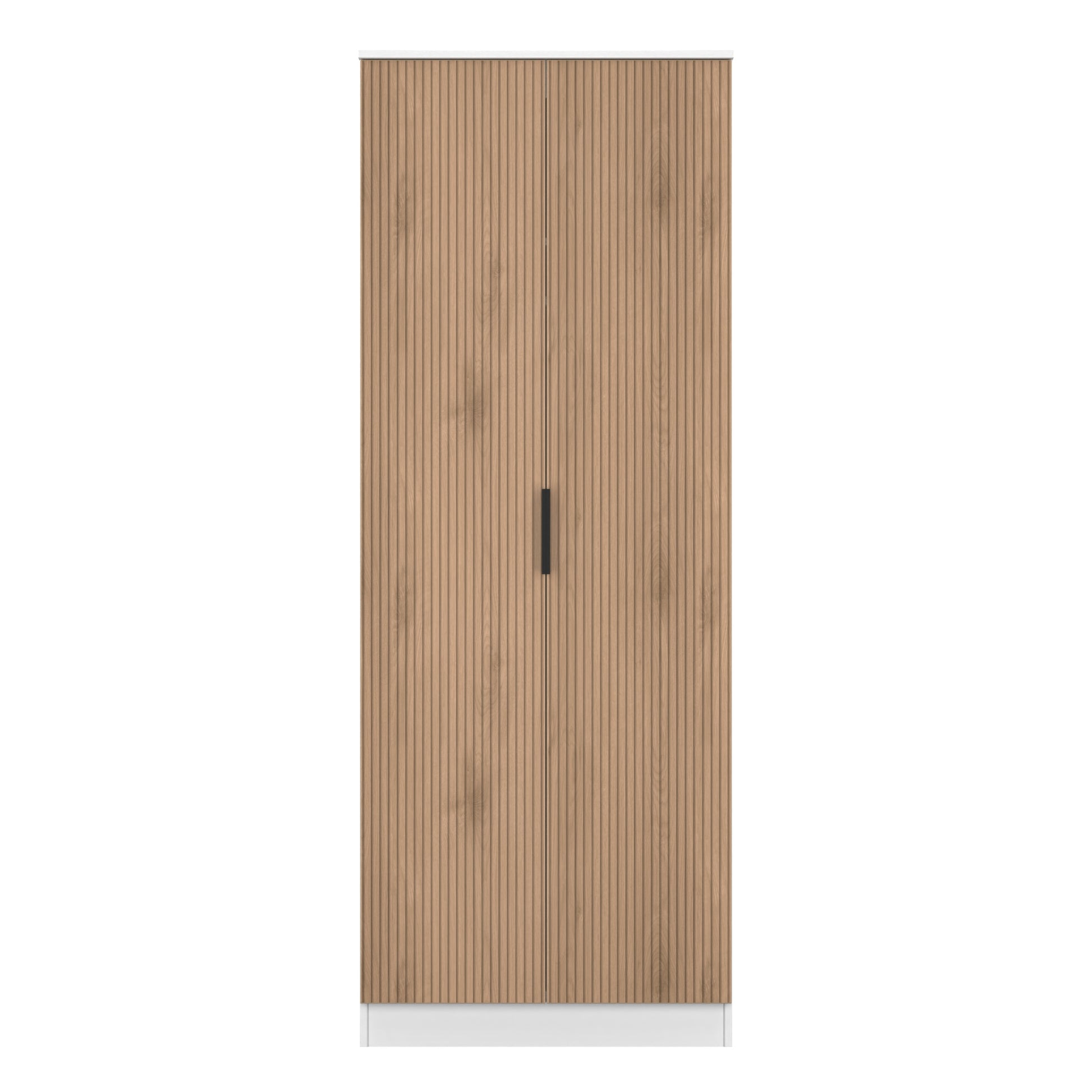 This tall double door wardrobe is perfect for any bedroom. A strinking new range with a eye catching Slat Effect patten on the fronts or the doors and drawers, as well as sleek black metal handles. Modern and striking this range will stand out in any modern home. All our furniture is made to order in the United Kingdom, to the highest quality using responsibly sourced materials. It is delivered within 10 working days direct to your location of choice by one of our two man delivery teams, and comes fully assembled (although items with legs will have those legs removed during transit to avoid damage). Part of the Java Collection.