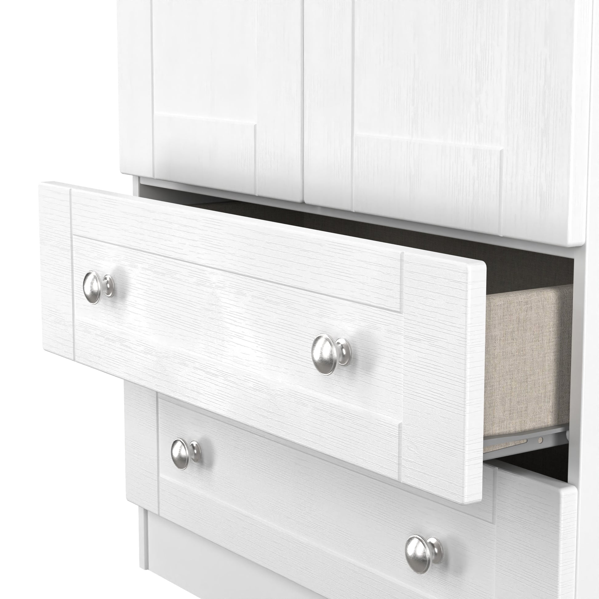 Swift Furniture provide top quality bedroom furniture manufactured in the UK. All products are assembled at the factory prior to delivery. Swift Furniture products are made from high quality scratch resistant materials, with strong metal fixings, handles and knobs. Drawers are lined and run smoothly on metal runners.