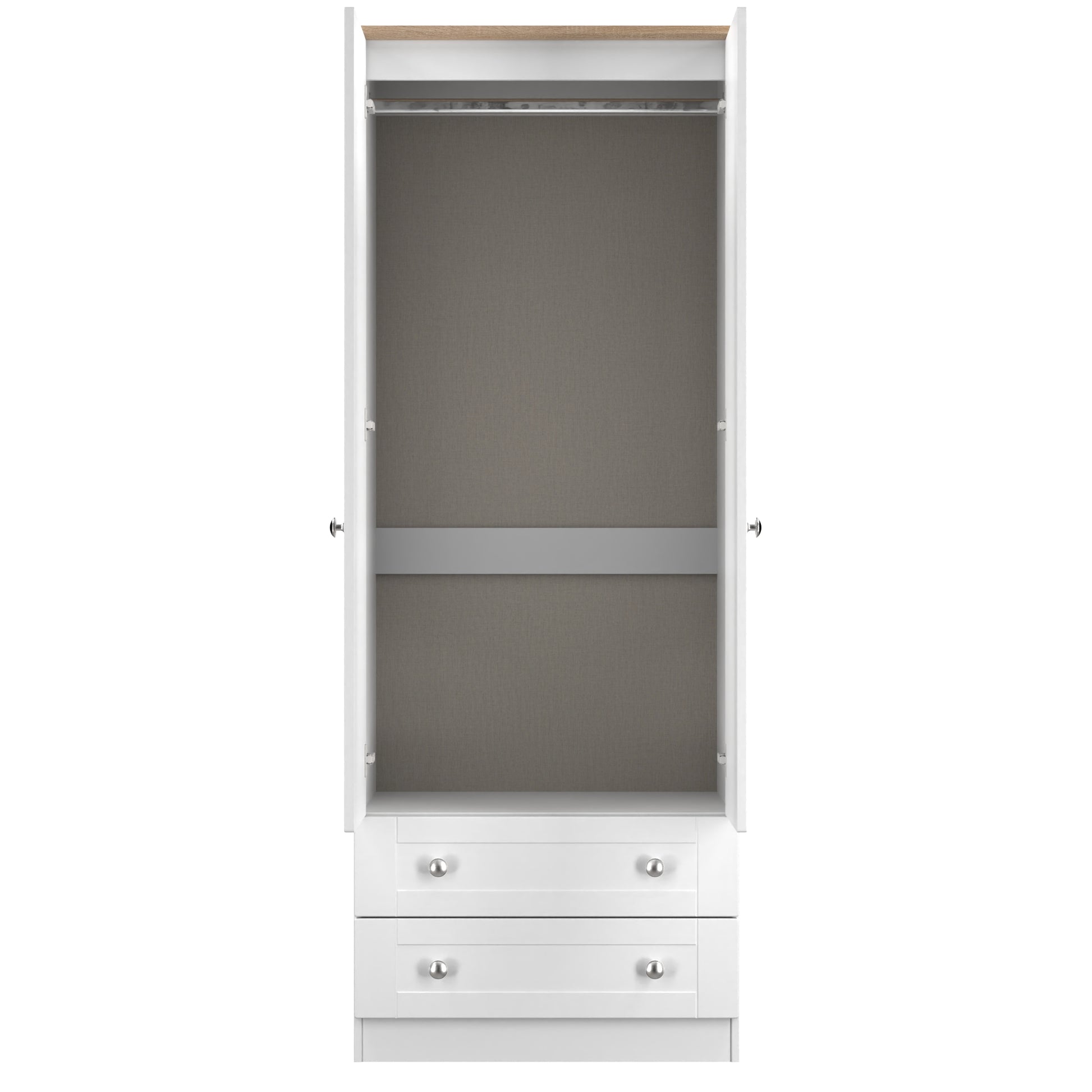 Sussex Tall Wardrobe White & Light Oak 2 Drawers 74cm