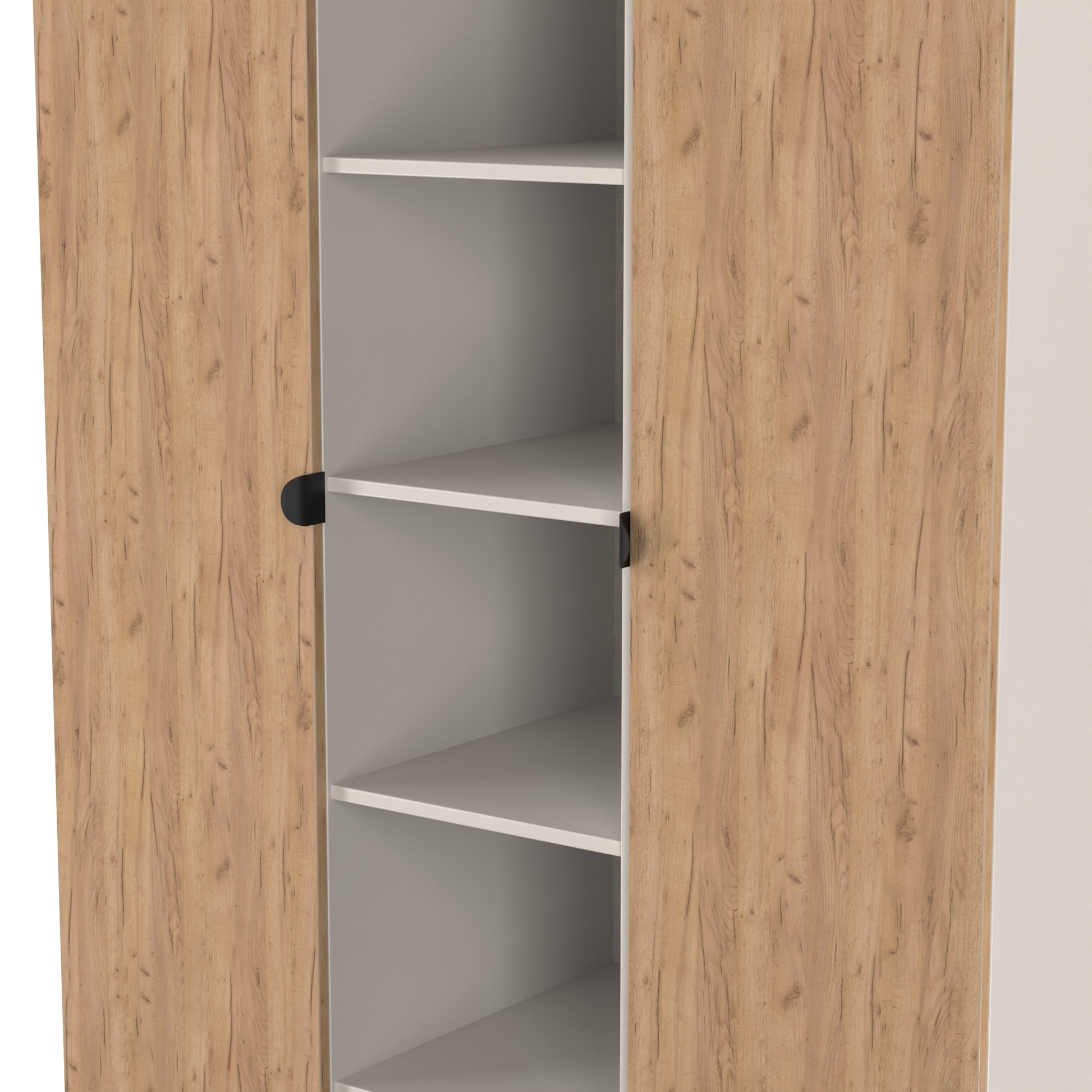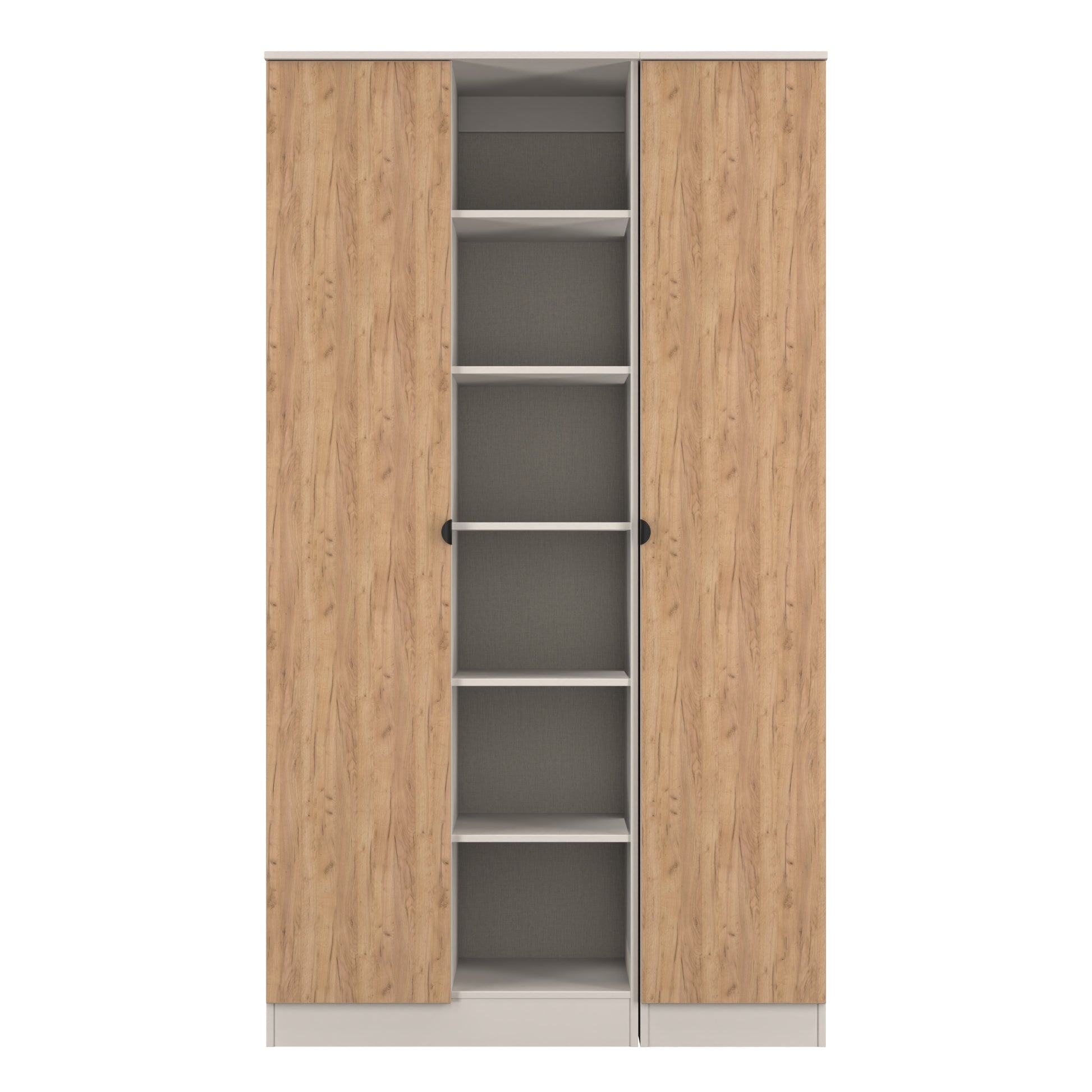 Bora Tall Wardrobe Oak & Off-White 3 Doors 6 Shelves 196cm