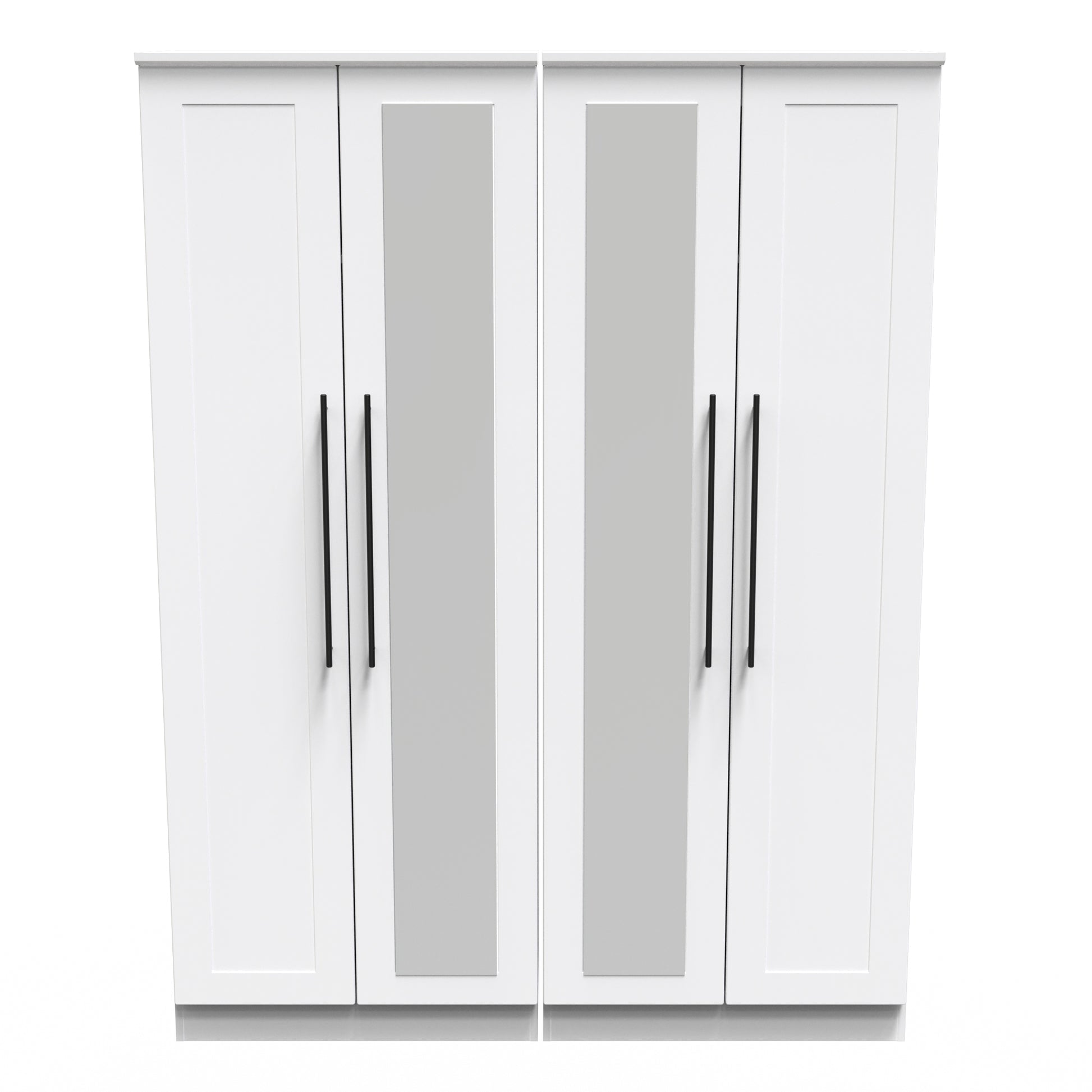 Beverley Tall Mirror Wardrobe White 4 Doors 1 Shelf 196cm