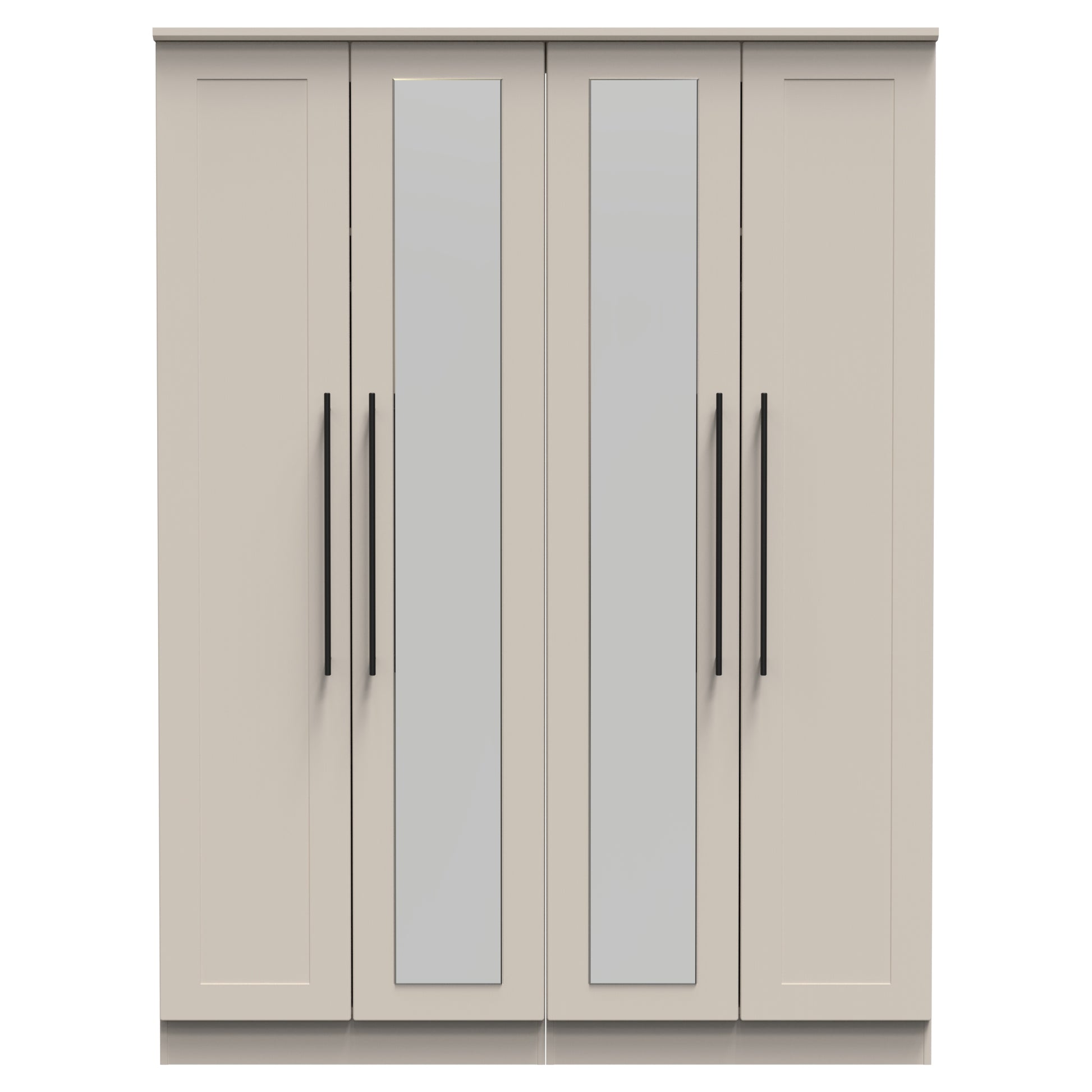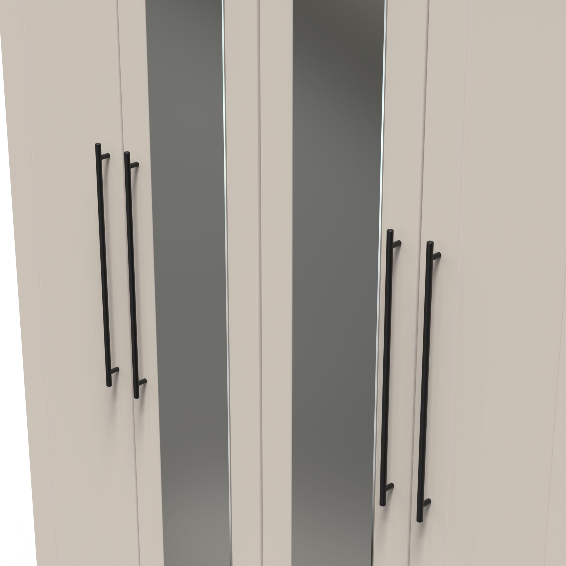 Beverley Tall Mirror Wardrobe Off-White 4 Doors 1 Shelf 196cm