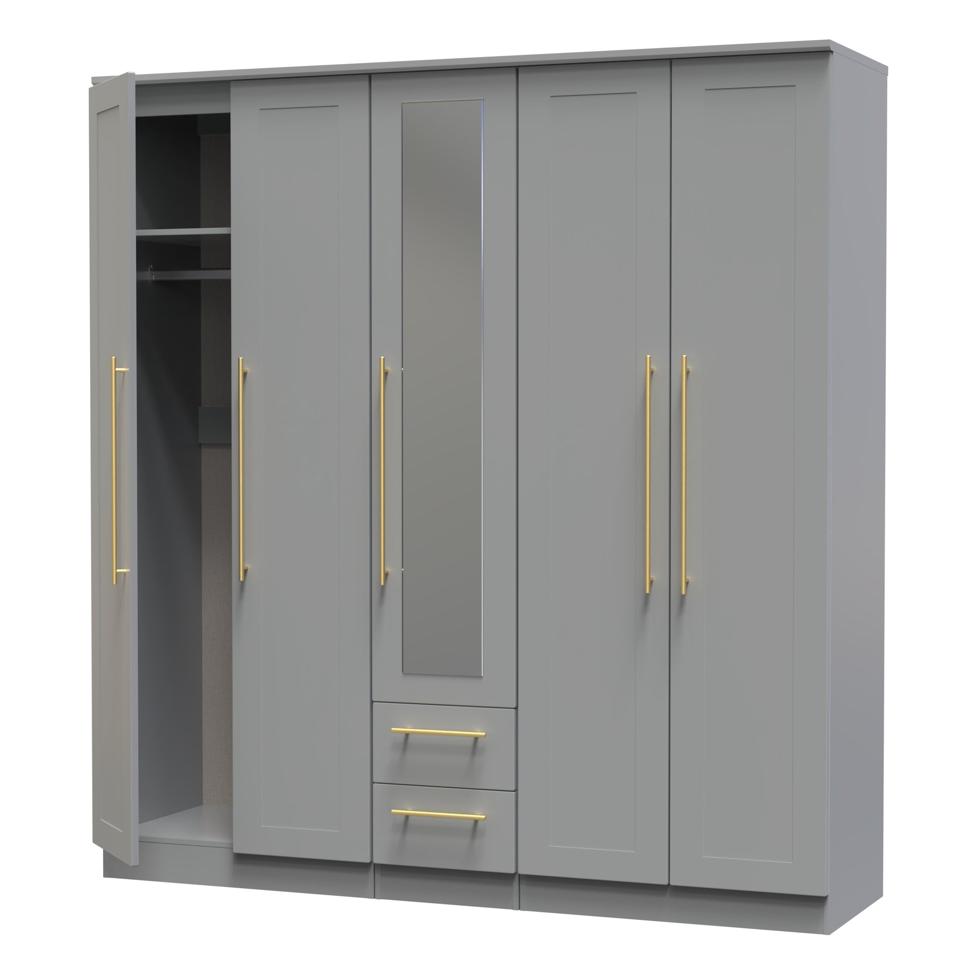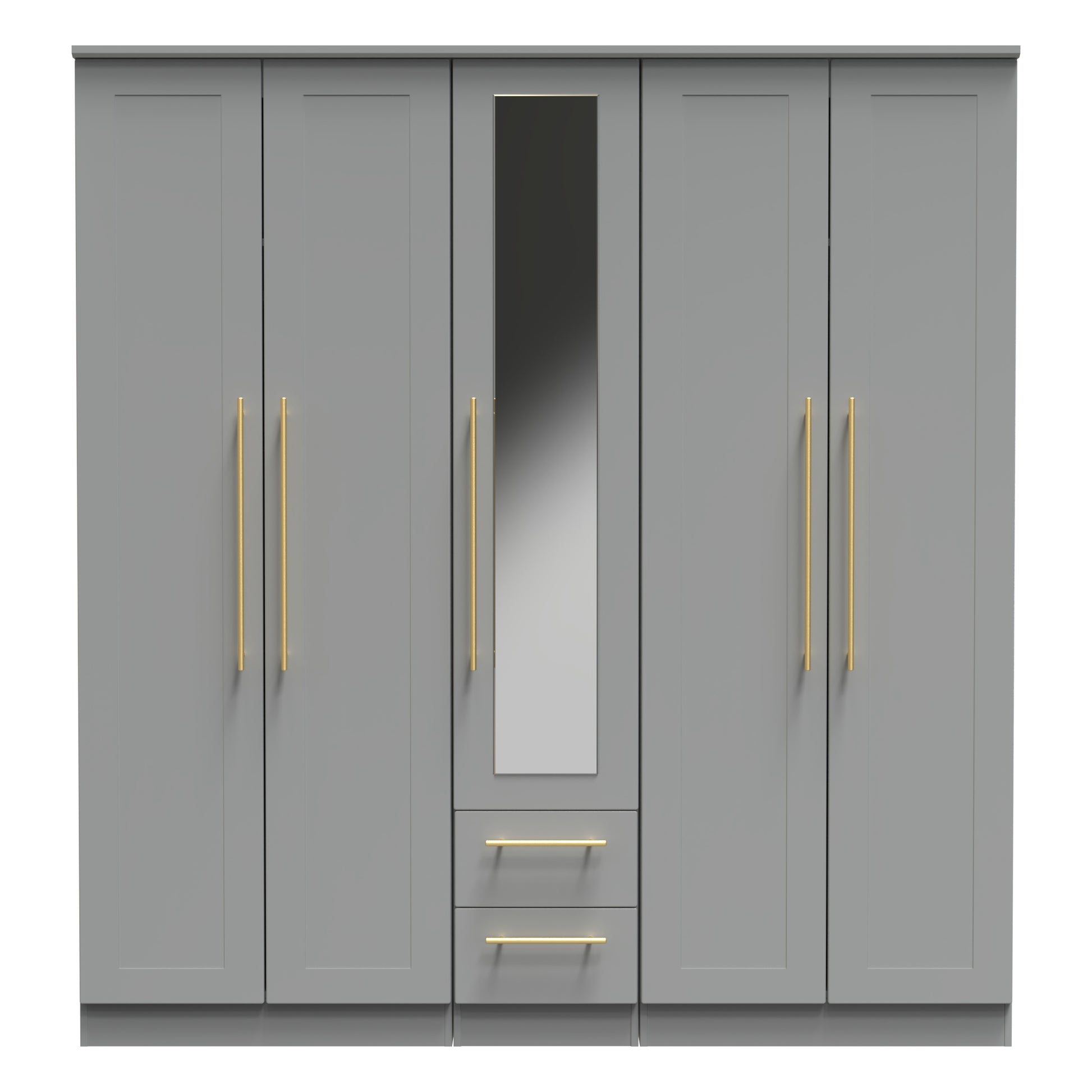 Haworth Tall Mirror Wardrobe Grey 5 Doors 2 Shelves 2 Drawers 196cm