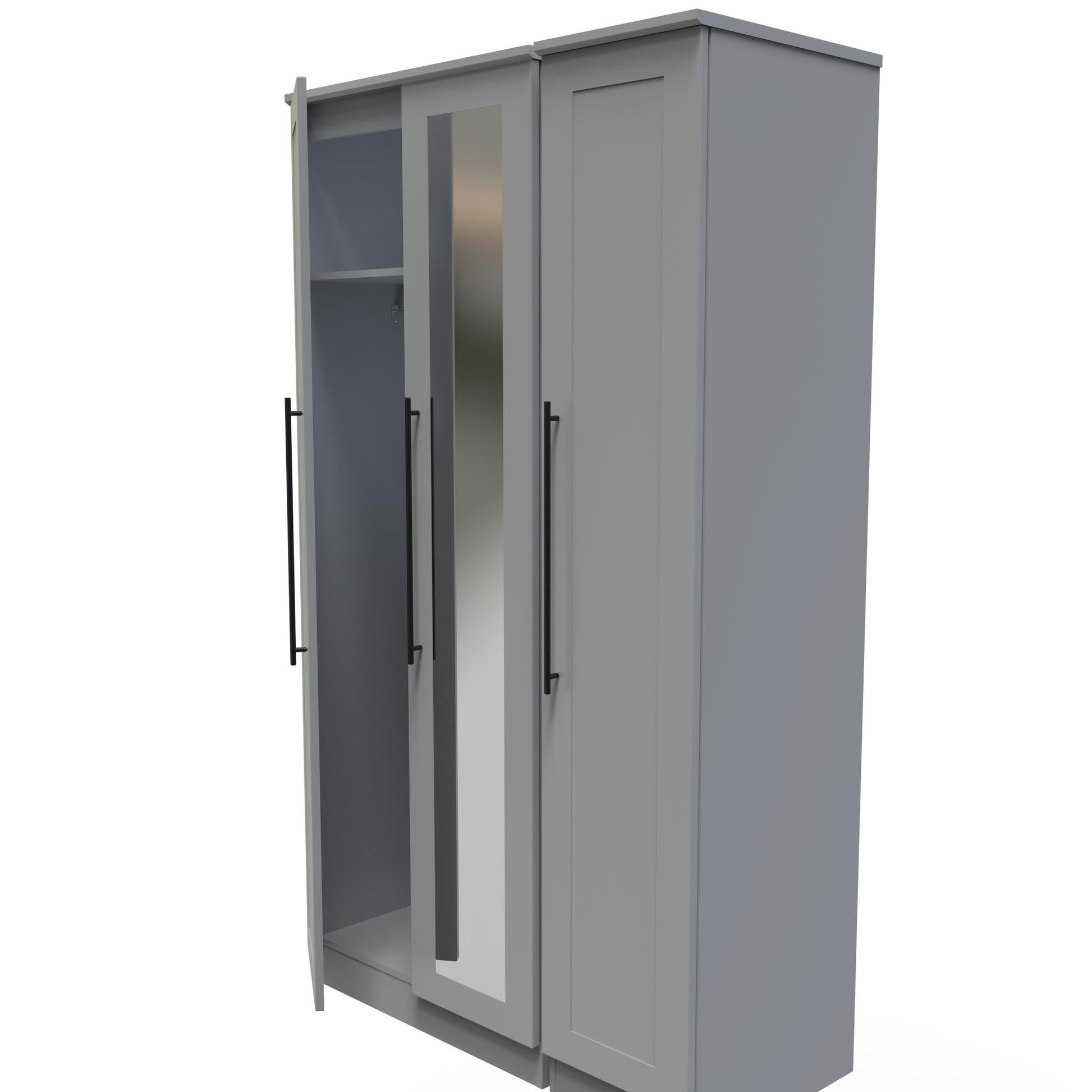 Beverley Tall Mirror Wardrobe Grey 3 Doors 1 Shelf 196cm