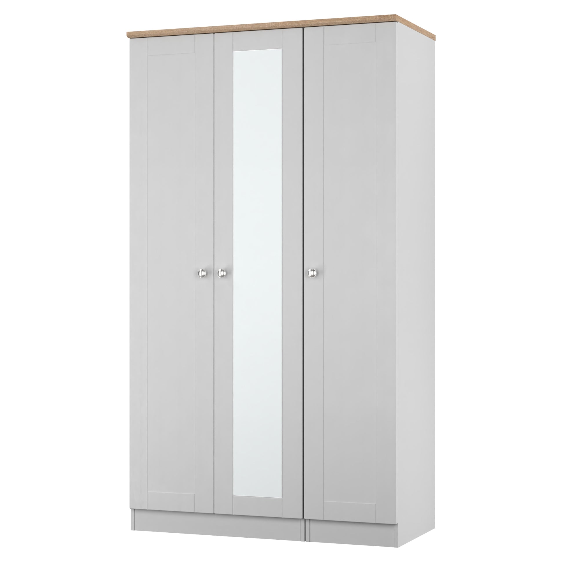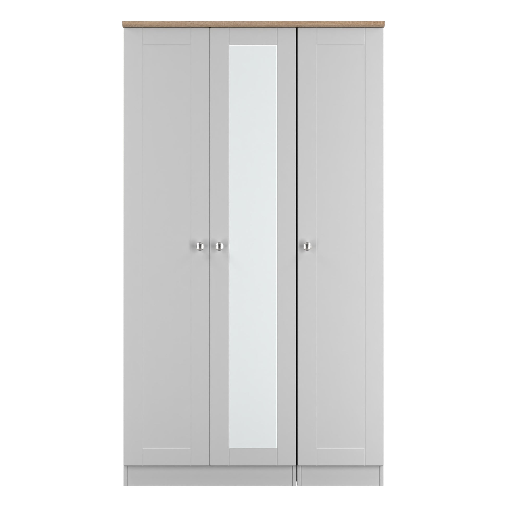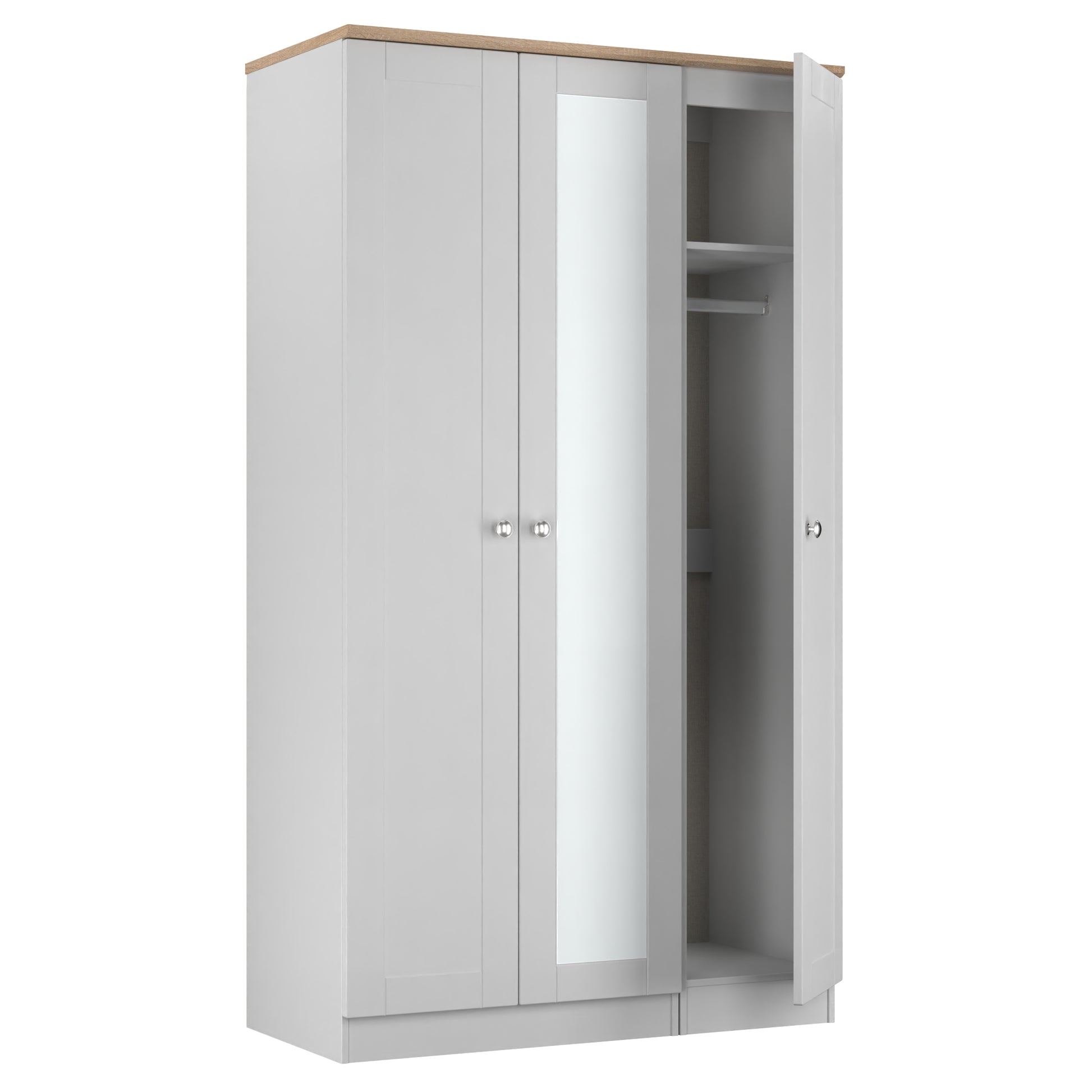 Sussex Tall Mirror Wardrobe Grey & Light Oak 1 Shelf 111cm