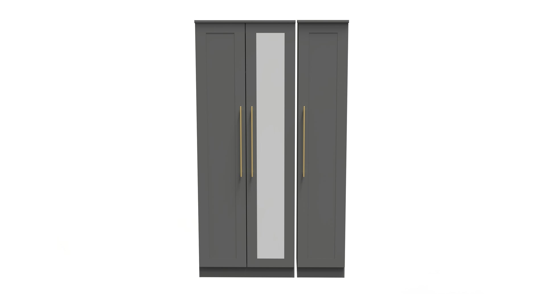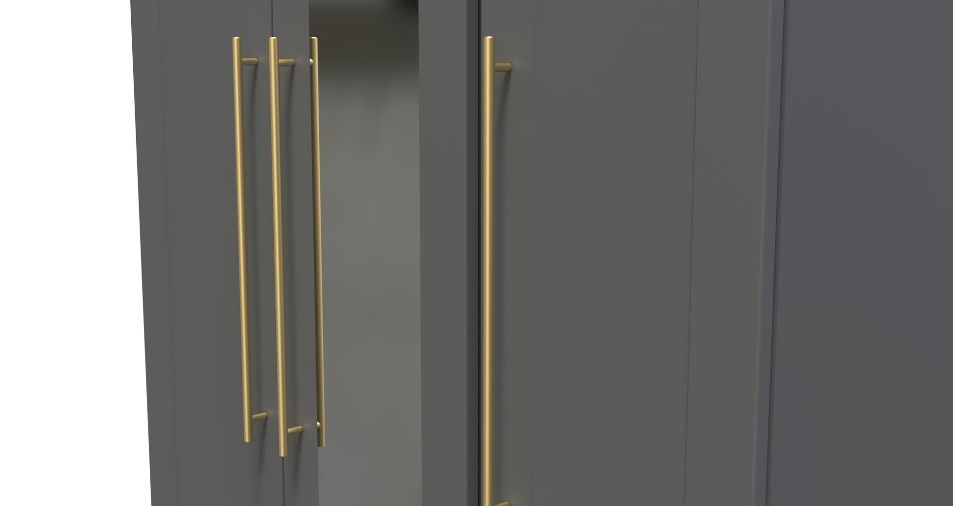 This tall triple 3 door wardrobeis perfect for any bedroom when a normal wardrobe is just not large enough. Also features a full height single mirrored door. This range is modern and elegant with a smooth clean design. Features sleek gold T-Bar handles and comes ina range of scratch resistant colours. All our furniture is made to order in the United Kingdom, to the highest quality. It is delivered within 10 working days direct to your location of choice by one of our two man delivery teams, and comes fully assembled (although legs may be removed to prevent damage in transit). Part of the Haworth Collection.