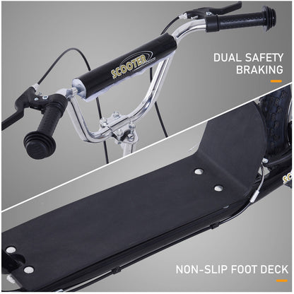 Make outdoors extra fun with this kids scooter from HOMCOM. With adjustable handlebars, it's suitable for different heights – they'll be comfortable when scootering, whilst the wide non-slip foot deck keeps them perfectly balanced. Steel frame for extra stability and brakes on the front and rear wheels, bringing the offroad scooter to a swift stop when necessary. Whether it's the school run, around the park or up and down the street, the inflatable tyres ensure their ride is safe and smooth.