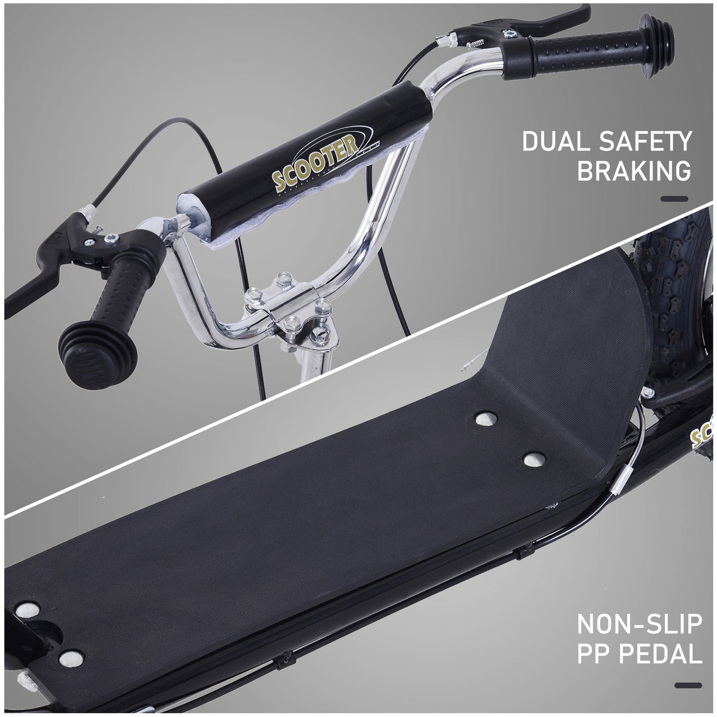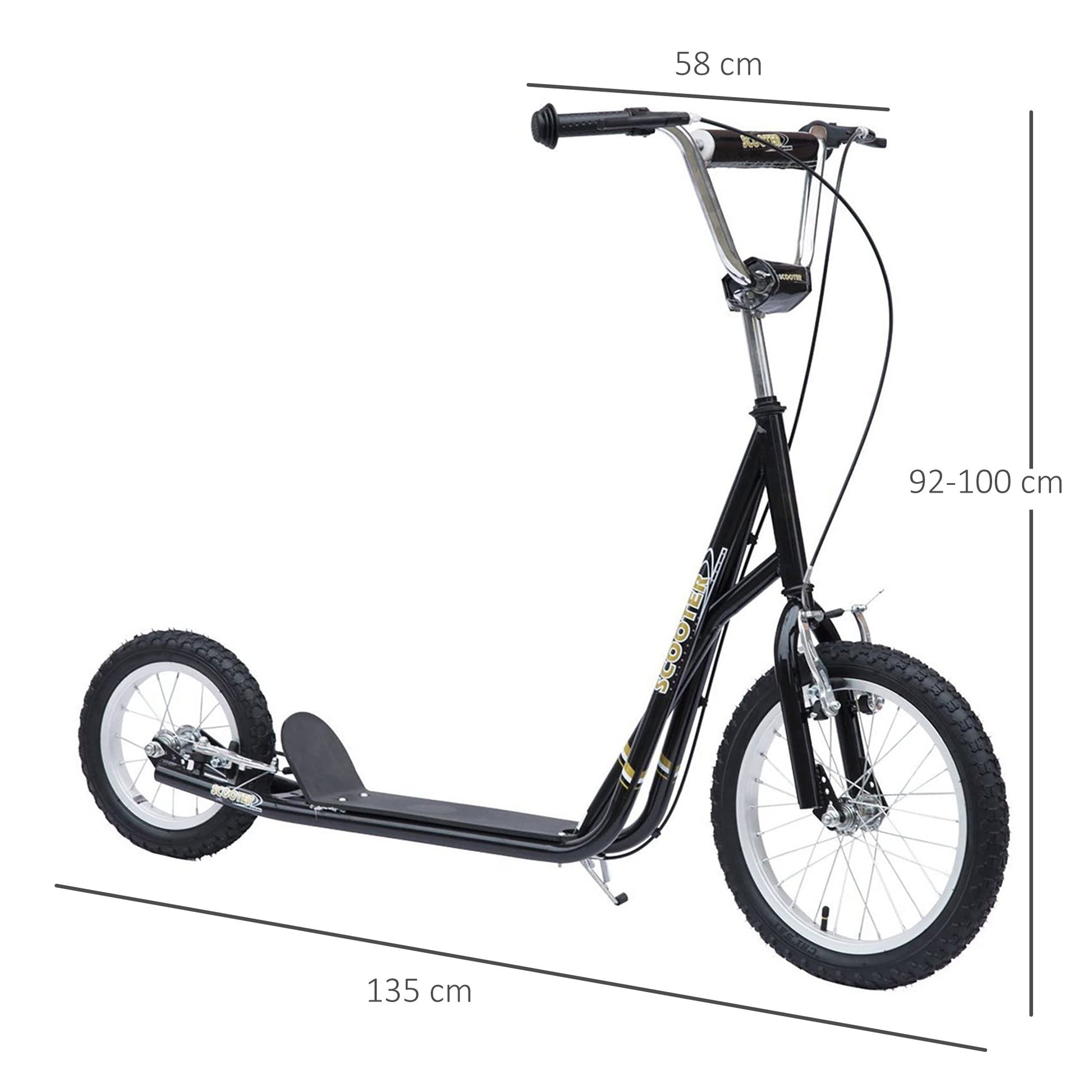 Kids will enjoy riding this HOMCOM scooter everywhere they go. With adjustable handlebars, children of different heights and ages can join the fun. They will stand on a wide foot deck for perfect balance, whilst the front and rear brakes bring the scooter to a swift stop when necessary. Whether it's the school run, around the park or up and down the street, this is the perfect scooter for kids, making outdoors extra special.