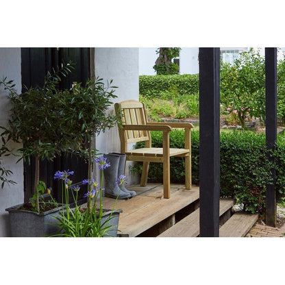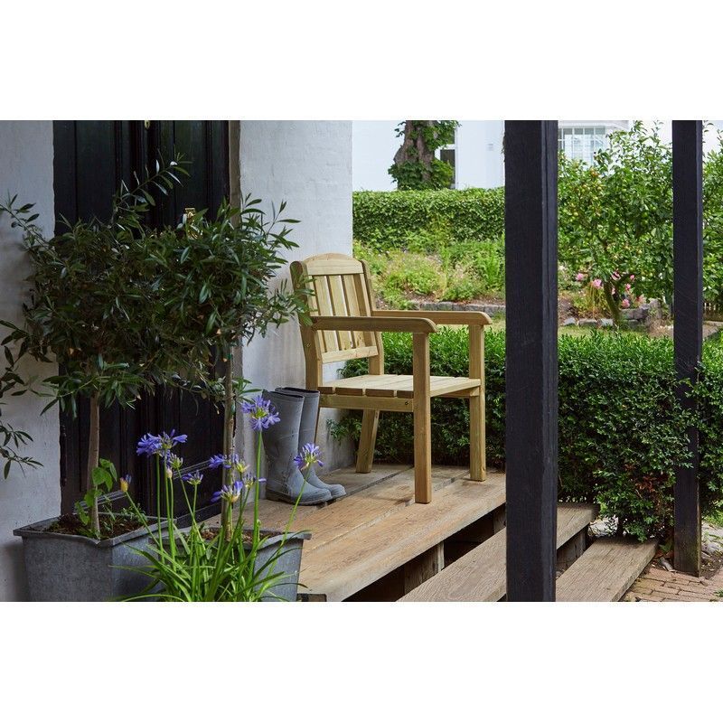 A garden chair offering both style and versatility. Must-have garden furniture suitable for smaller outdoor spaces, or for adding additional seating with an existing dining set. Wood, with the right care and attention, solid wooden garden furniture can last a lifetime. It doesn?t rust like metal and neither will it lose its colour in the sun like some plastic garden furniture. Create your very own tranquil outdoor space whether you're reading a book or relaxing in the sun. The Single Garden Seat has a traditional design which is ideally used as a seat on a porch or as part of a collection with a garden table. When used as a standalone single garden chair, it can offer a great solution to sit in a peaceful location of the garden, resting in between gardening tasks. The timber is made from FSC certified species from well-managed forests and is supplied treated natural green against fungal decay and wood rot.