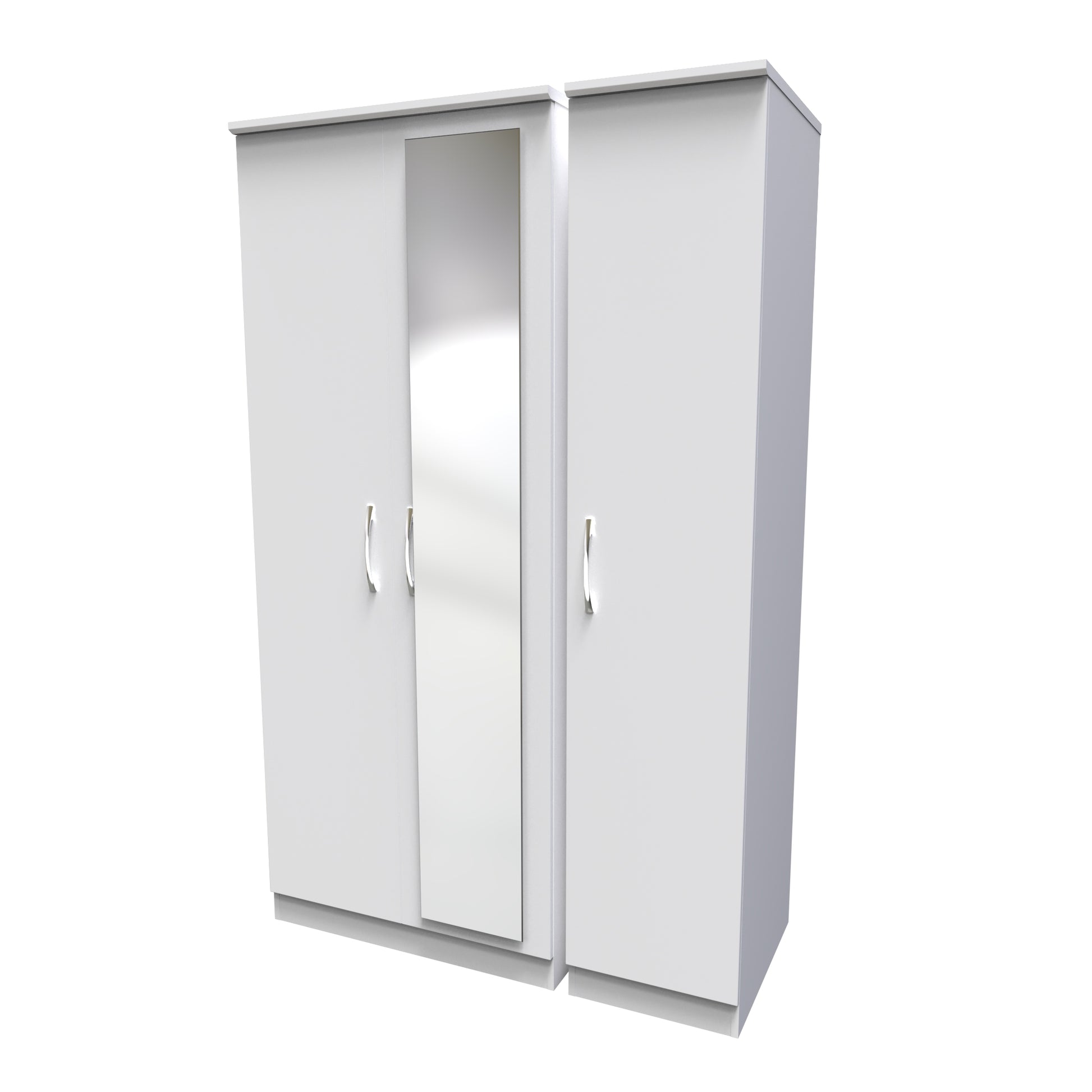 This full height triple 3 door wardrobe is perfect for any bedroom when a normal wardrobe is just not large enough. Also features a full height single mirrored door. A great-value furniture range with a sleek classic look and feel that's just right for any interior. The simple, no-fuss design features clean lines and stylish chrome handles. A timeless design that will withstand the changes of fashion. All our furniture is made to order in the United Kingdom, to the highest quality. It is delivered within 10 working days direct to your location of choice by one of our two man delivery teams, and comes fully assembled (although legs may be removed to prevent damage in transit). Part of the Avon Collection.