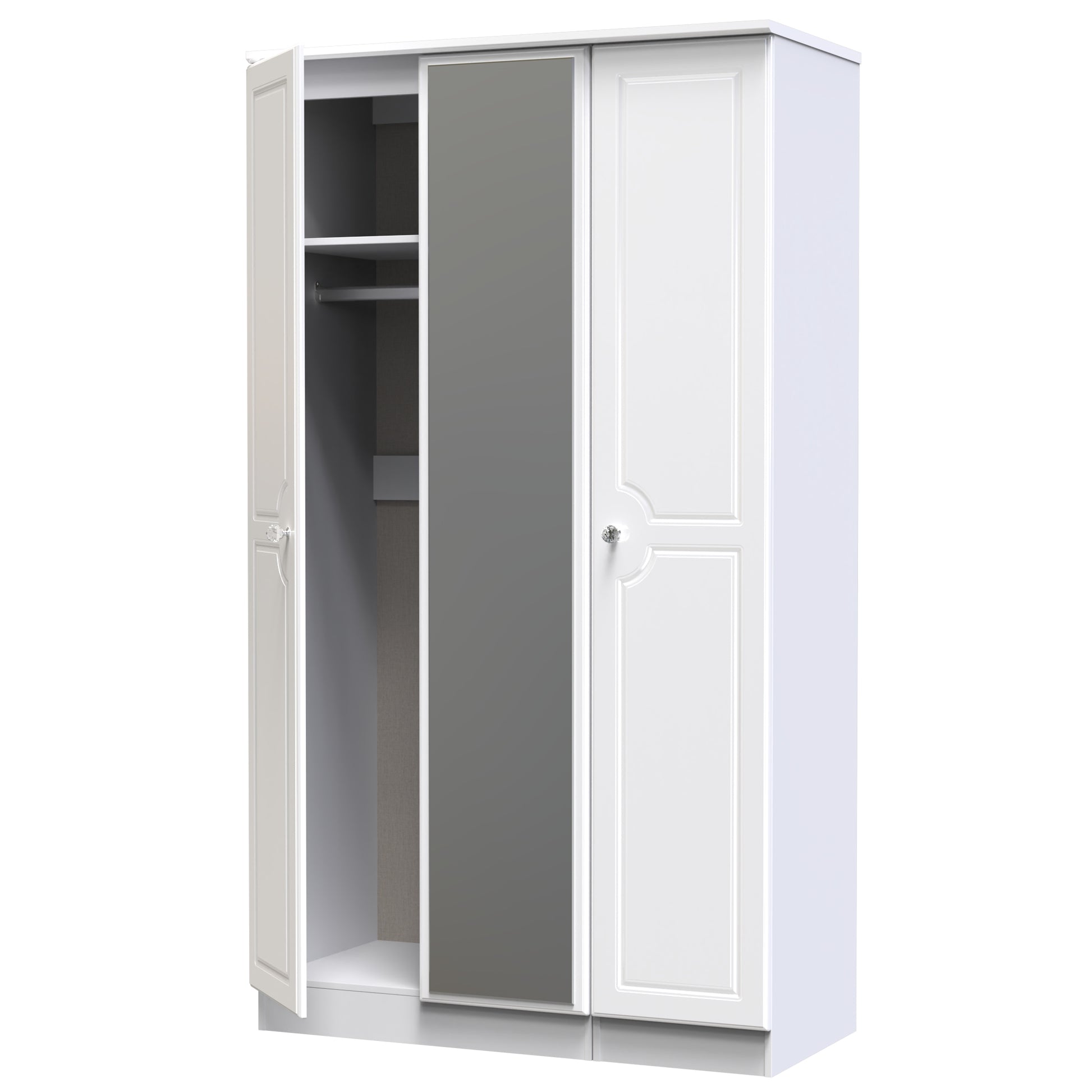 Balmoral Tall Mirror Wardrobe White 3 Doors 2 Shelves 182cm