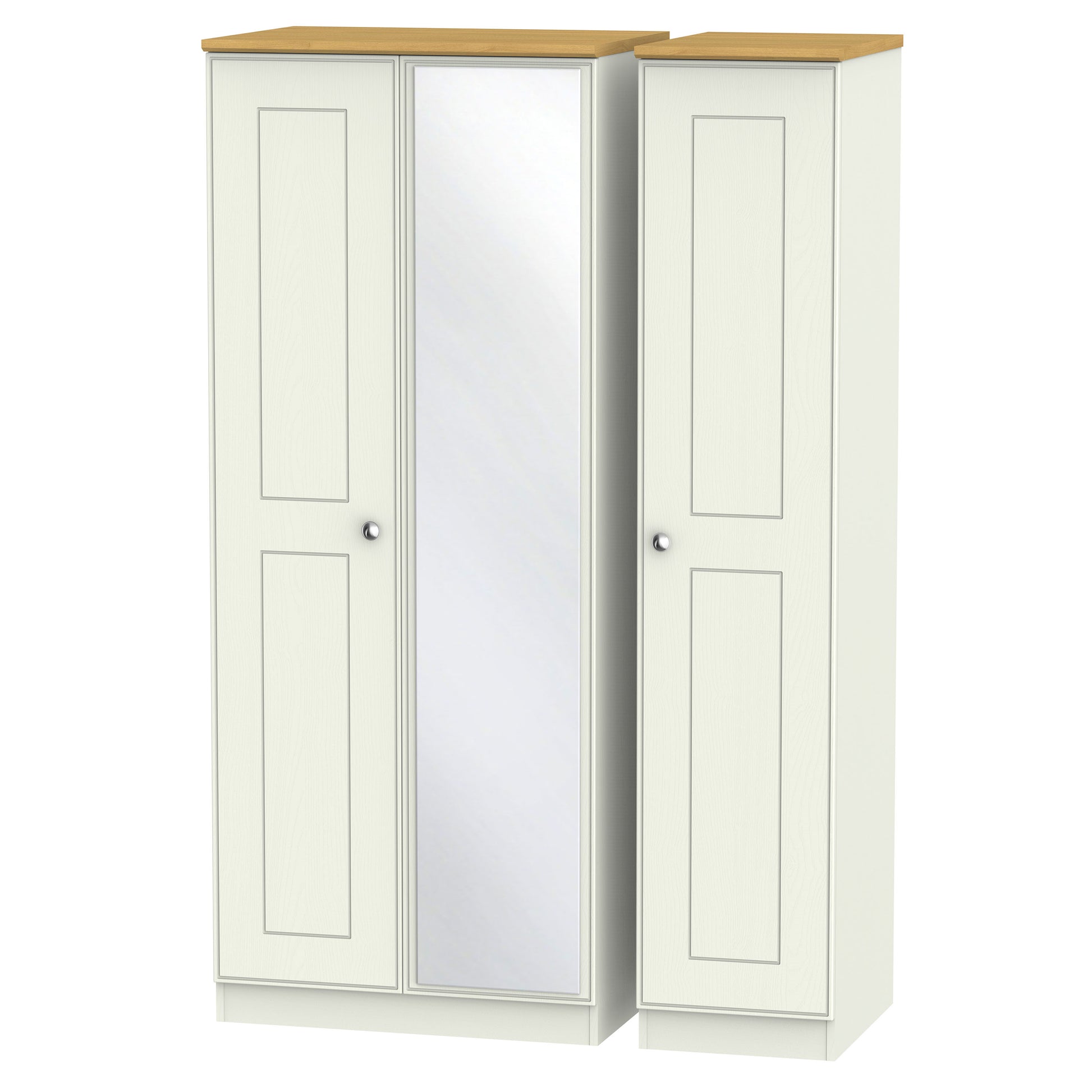 Victoria Tall Mirror Wardrobe Cream & Light Oak 1 Shelf 111cm