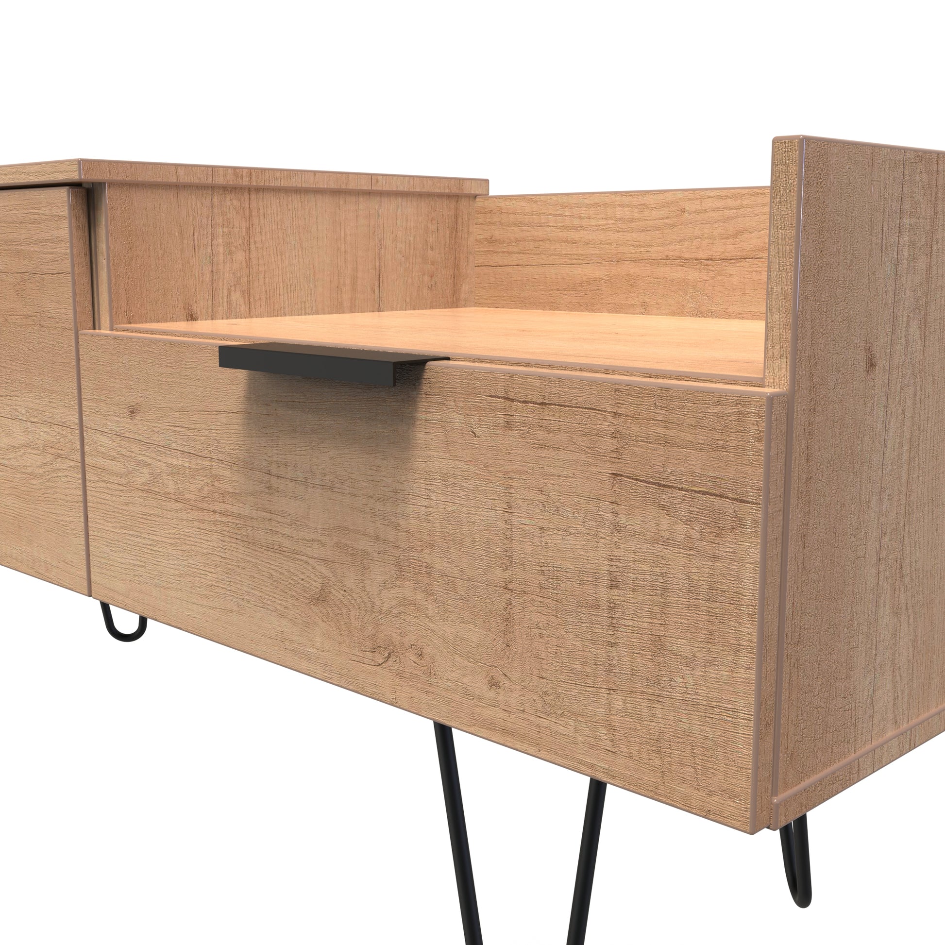 This TV unit from Swift offers great value along with first-rate quality and is ideal for those who admire pleasing aesthetics and versatility for a range of situations. A solid and well-designed TV unit, specifically built to display your television, media players and peripherals, this piece will make an exceptional upgrade to any living area. With a stylish dark oak colour scheme that will look sleek and sophisticated.