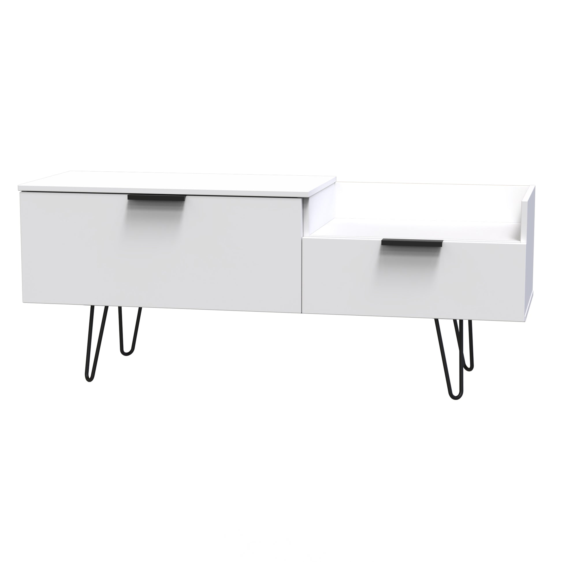 Hong Kong C TV Unit White 1 Shelf 2 Drawers 128cm