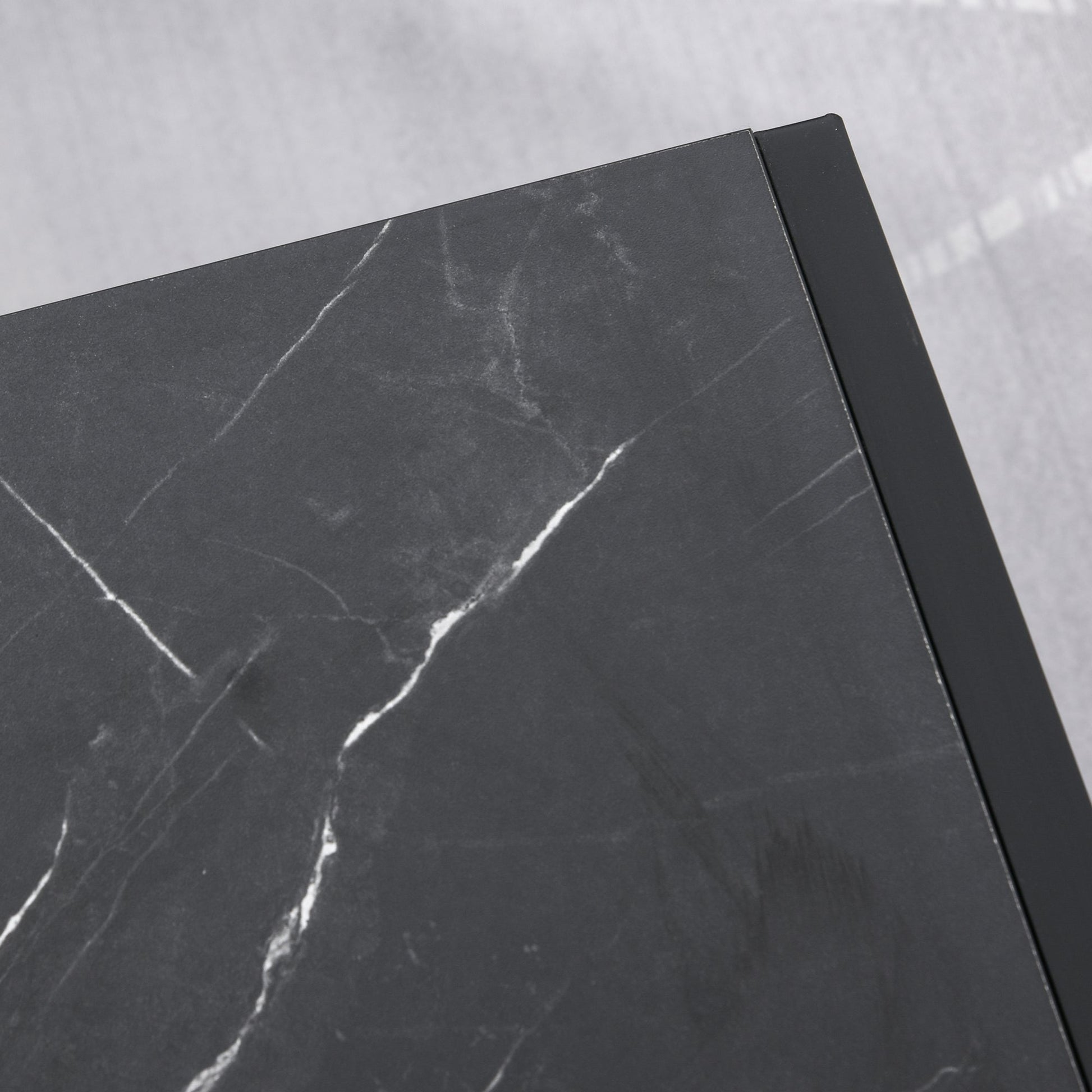 Bringing a sleek and exciting twist to an everyday home furnishing piece, this coffee table from HOMCOM is perfect for updating your space instantly. Its two-tier design ensures it will give you plenty of room for storing and holding what you need, with the metal frame ensuring it is strong and sturdy for everyday use. Both table tops are made into a black and laminate marble print table top finish for a beautiful look which looks great placed almost anywhere.