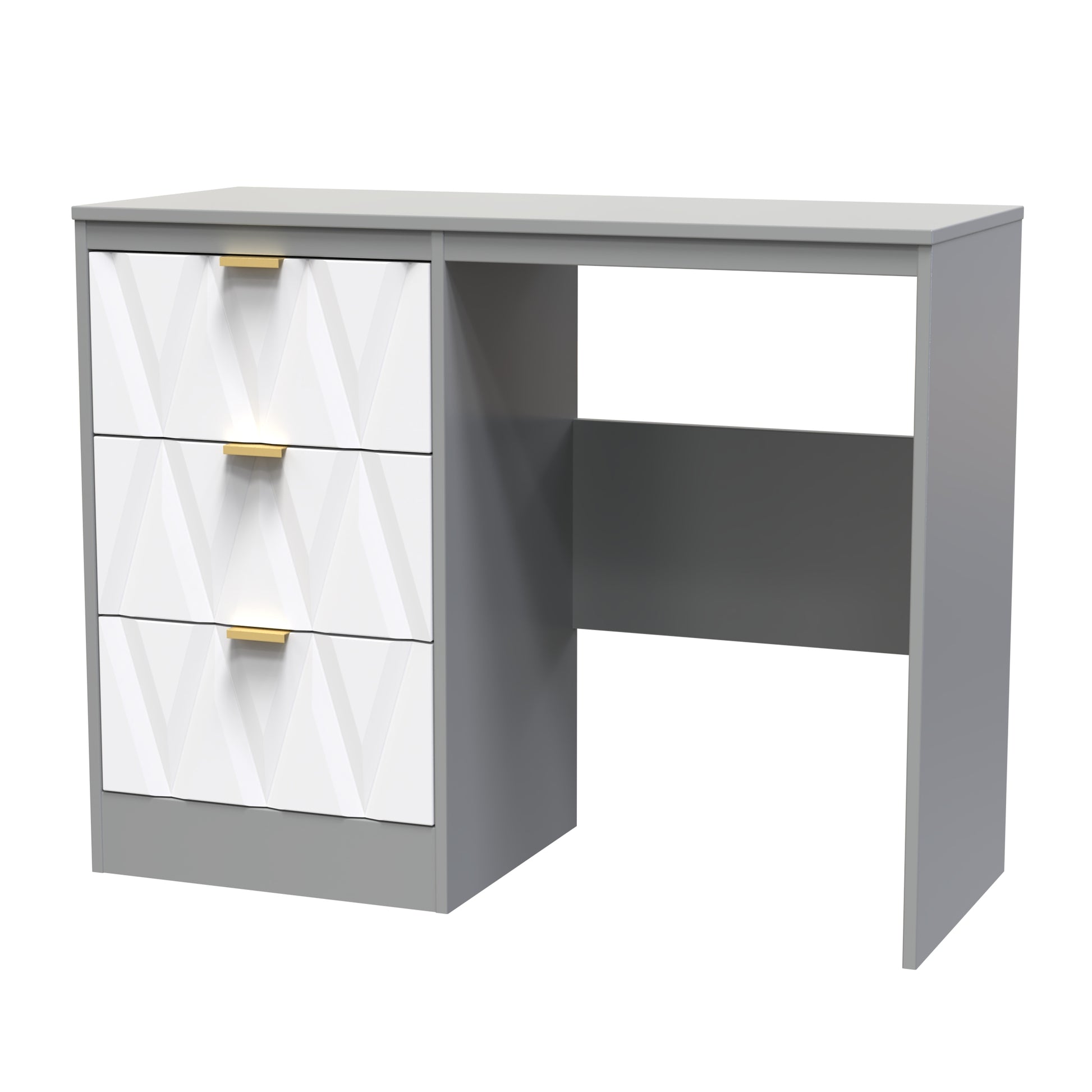 This practical 3 drawer narrow desk/vanity is perfect for any bedroom or office. A matching stool and mirror (in 2 sizes) are also available. The distinctive front of this striking range combines a variety of colour options, with a choice of handles allowing it to compliment any interior design. Part of the Las Vegas F Collection.