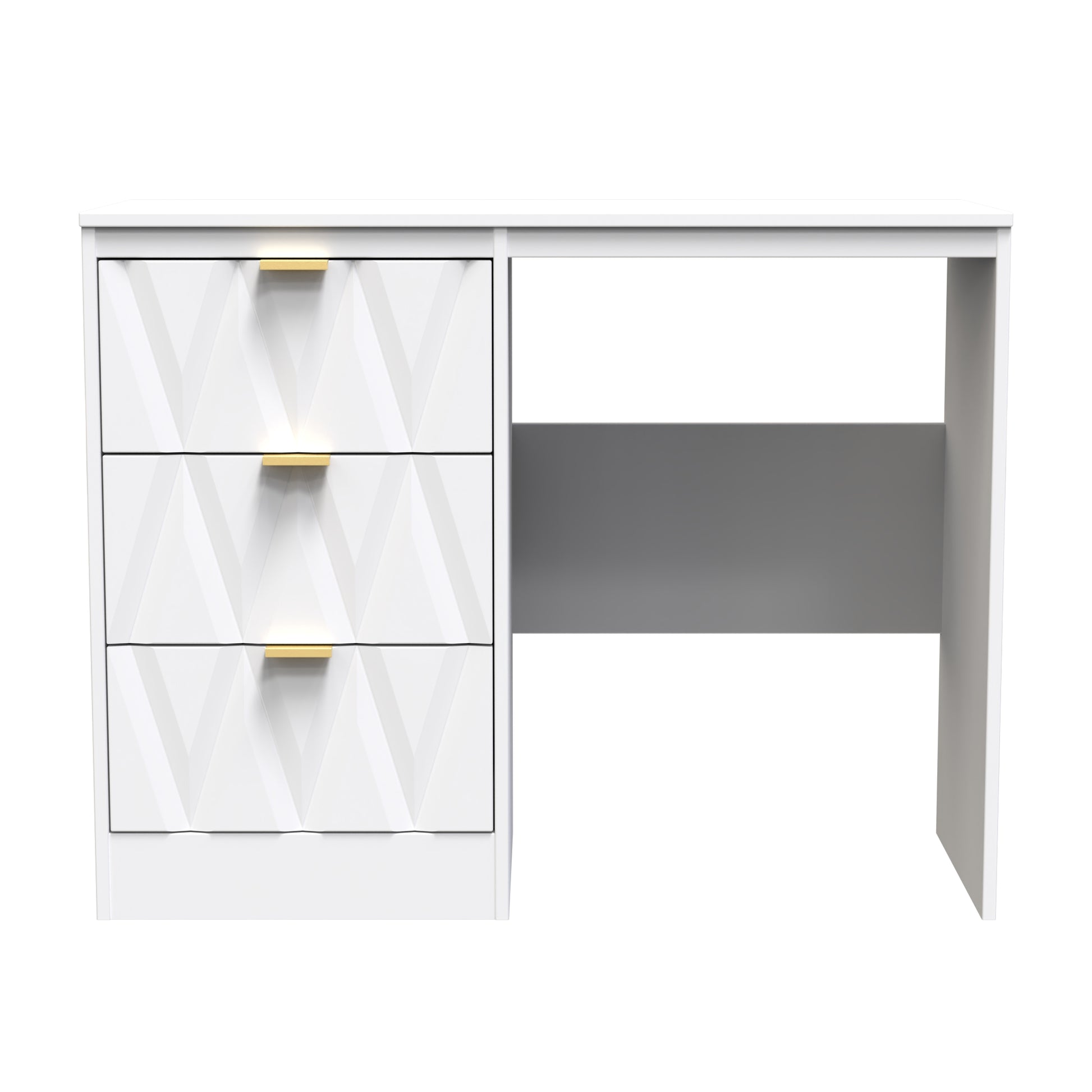 This practical 3 drawer narrow desk/vanity is perfect for any bedroom or office. A matching stool and mirror (in 2 sizes) are also available. The distinctive front of this striking range combines a variety of colour options, with a choice of handles allowing it to compliment any interior design. Part of the Las Vegas F Collection.