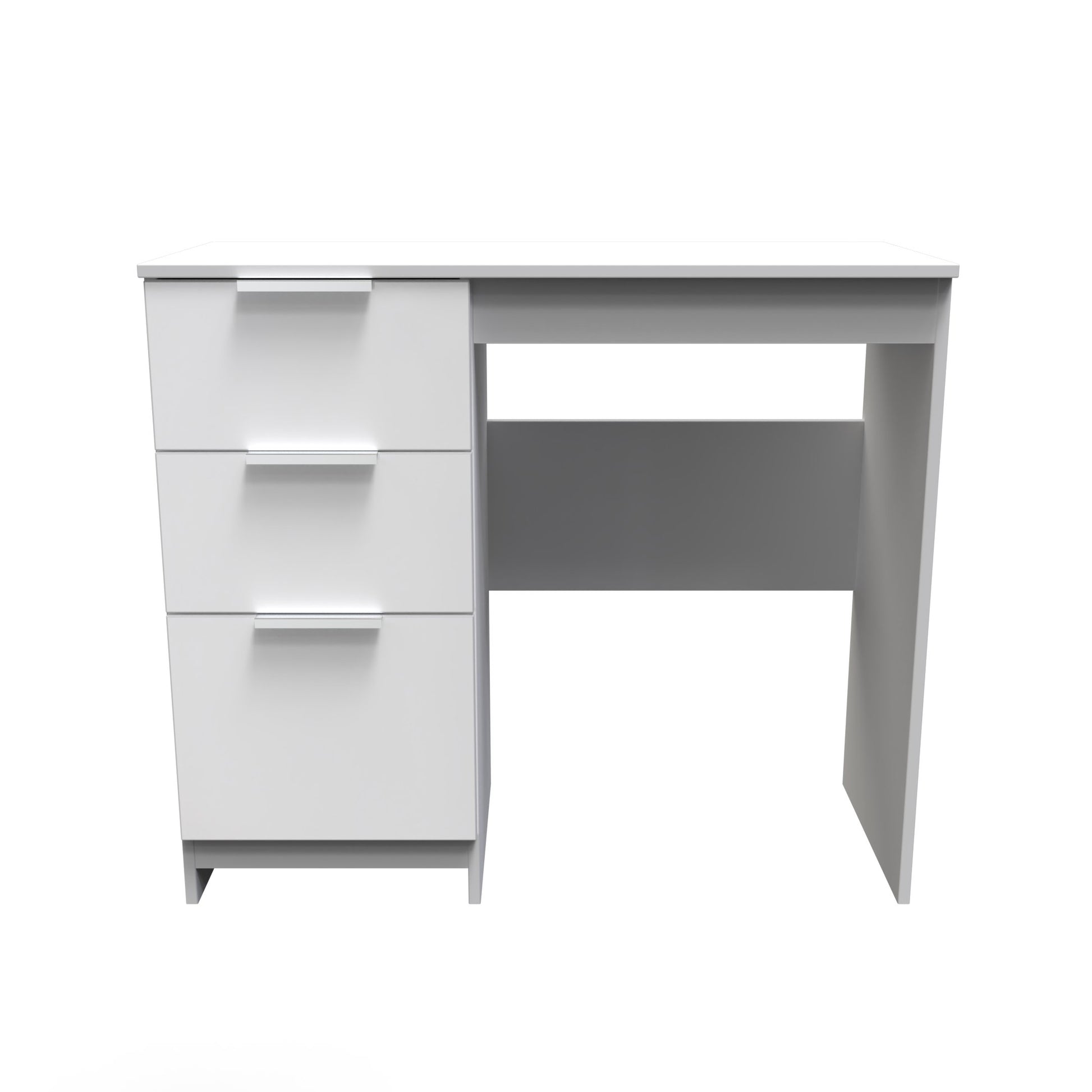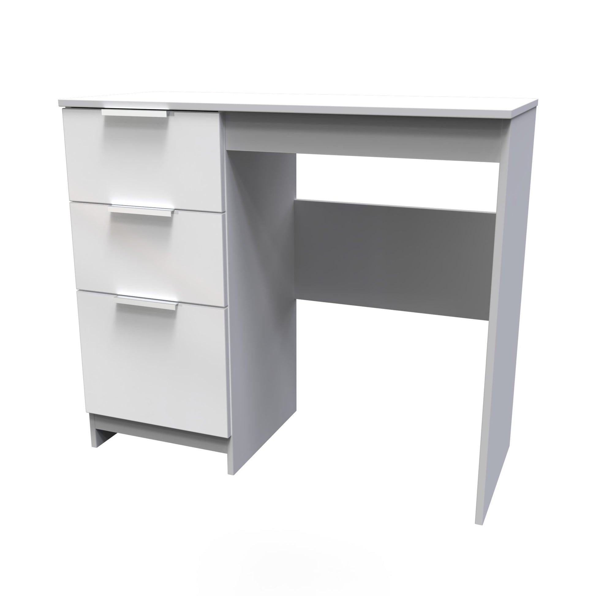 This practical 3 drawer narrow desk/vanity is perfect for any bedroom or office. A matching stool and mirror (in 2 sizes) are also available. A Fresh modern range, with solid metal pull handles and comes in a range of scratch resistant gloss or matt finishes. All our furniture is made to order in the United Kingdom, to the highest quality. It is delivered within 10 working days direct to your location of choice by one of our two man delivery teams, and comes fully assembled (although legs may be removed to prevent damage in transit). Part of the Plymouth Collection.
