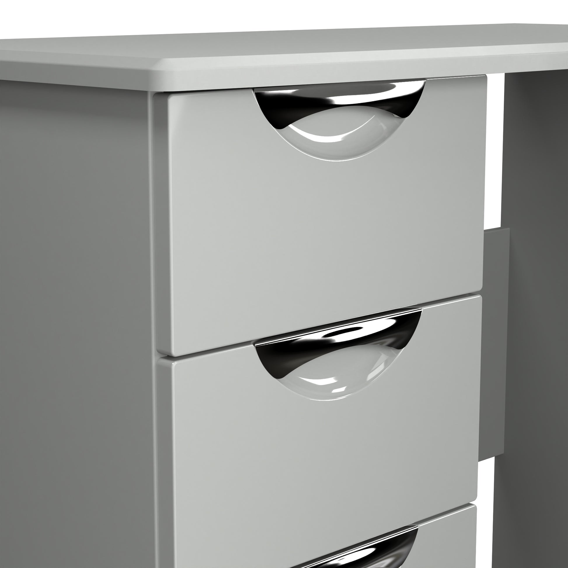 This practical 3 drawer narrow desk/vanity is perfect for any bedroom or office. A matching stool and mirror (in 2 sizes) are also available. Boasting a clean, contemporary look and pleasing practicality, the furniture range makes a seamless addition to any modern looking home. The range offers an array of practical, organised space for items both large and small that will help keep your room neat and tidy. All pieces have a scratch-resistant veneer to help prevent the wear and tear that can come with everyday usage, while the extensive colour options of the drawers and doors is complemented by distinctive cut-out handles and a smooth finish for a great mix of style and functionality. All our furniture is made to order in the United Kingdom, to the highest quality. It is delivered within 10 working days direct to your location of choice by one of our two man delivery teams, and comes fully assembled (although legs may be removed to prevent damage in transit). Part of the Camden Collection.