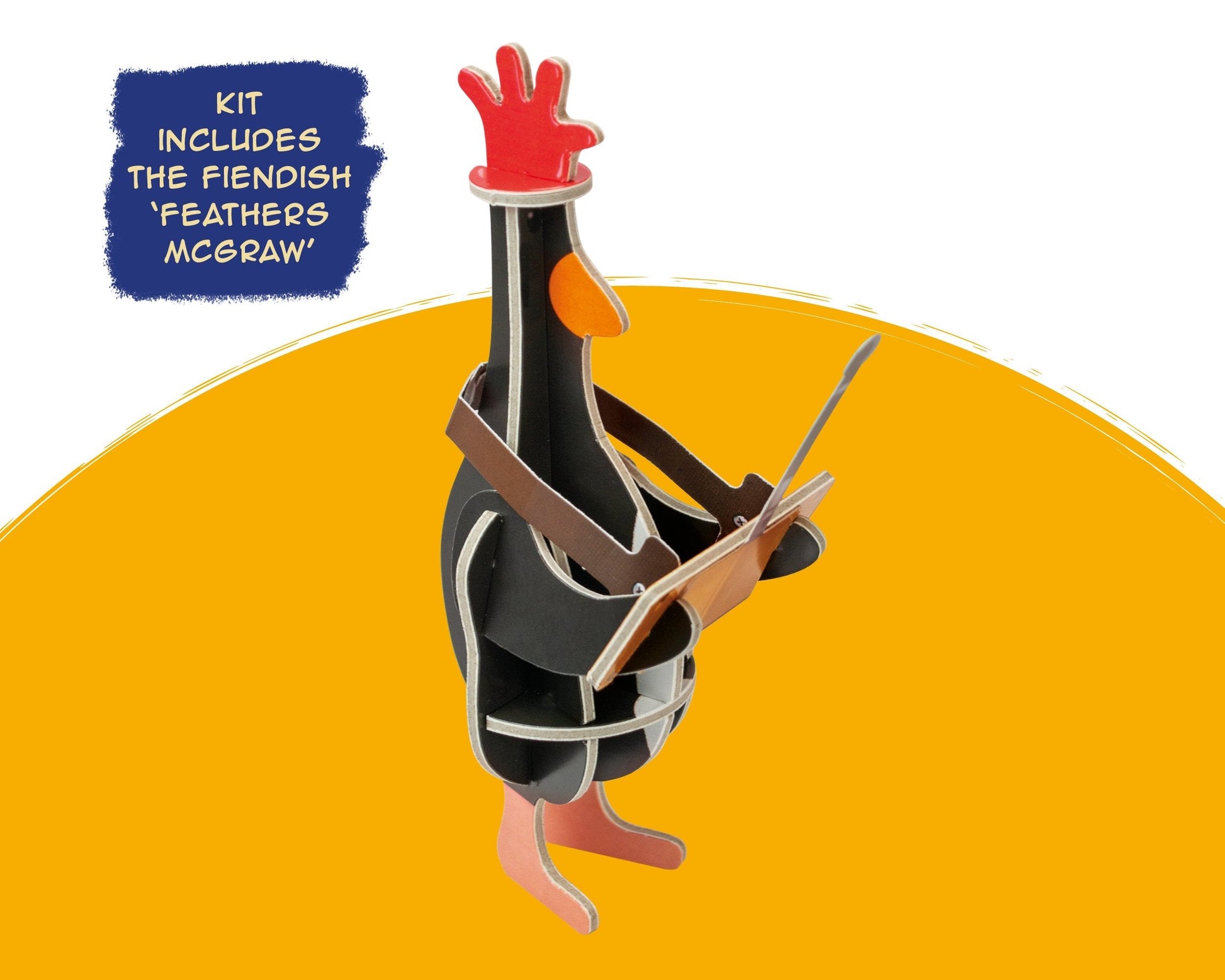 Includes the villainous penguin ‘Feathers’ McGraw and his chaos-causing remote-control panel. Plus, cut out a Wallace & Gromit postcard for an added touch of fun.