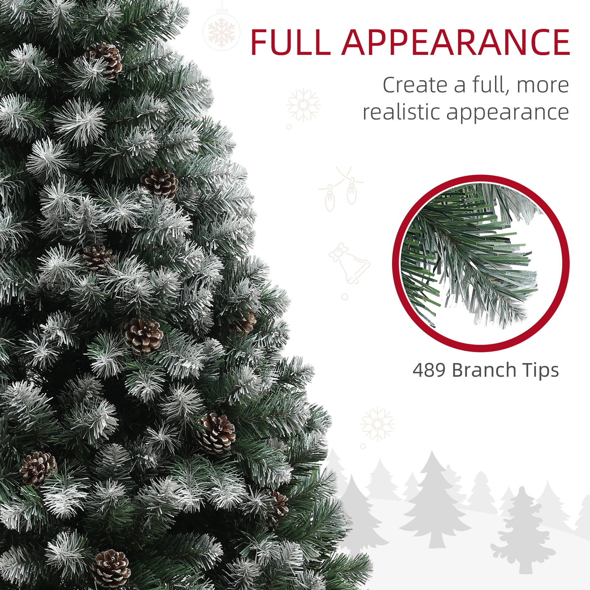 The classic pinecone tree will be a stylish centrepiece for your Christmas decorations. No festive household is complete without this iconic decoration at Christmas time and it comes in a stylish white frosted green colour scheme that will look great in any home. With 489 tips adorning this tree, it’s sure to look wonderful. The size makes it ideal for placement in your living room, dining room or hallway.