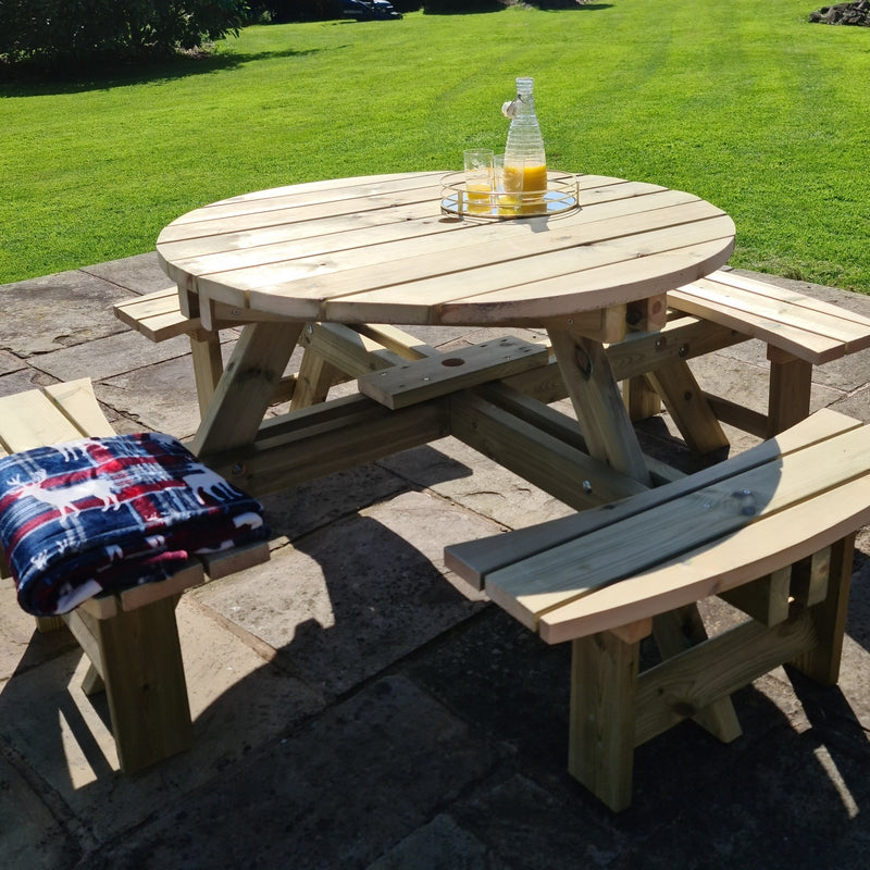 Perfectly shaped to optimize an unused corner, the Croft Westwood 8-Seater Square Picnic Table is a square version of the classic heavy duty picnic table with integrated seating for up to 8 people. This is a very versatile product, as it is well suited to a range of different environments, whether it is in a park, caravan site or private homestead. It is truly the perfect picnic table for high usage areas and establishments with limited indoor storage, but also for those private users looking for a simple, stylish and functional outdoor seating option for those summer barbeques celebrated with family and friends. This picnic table is perfectly combined with other products from the superb Croft range. Made with responsibly-sourced timber and pressure treated for greater durability. Constructed with rust-resistant galvanised zinc bolts. A product proudly made in Great Britain.