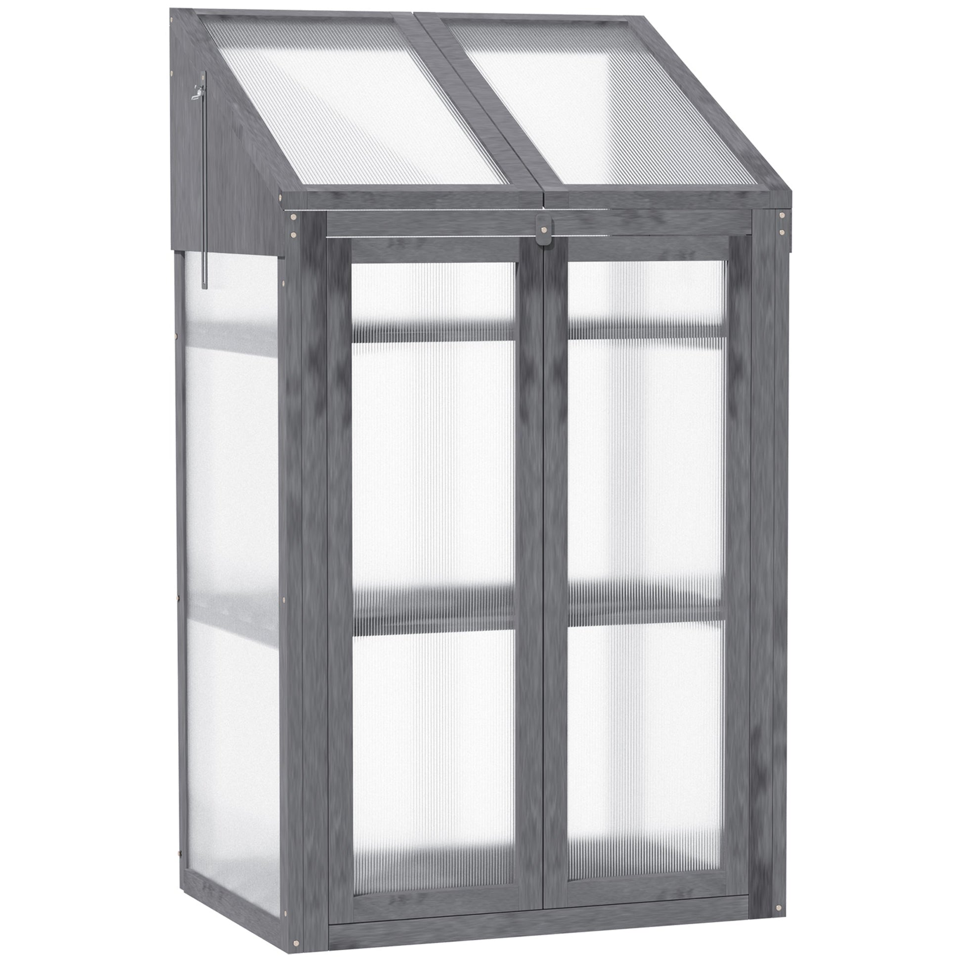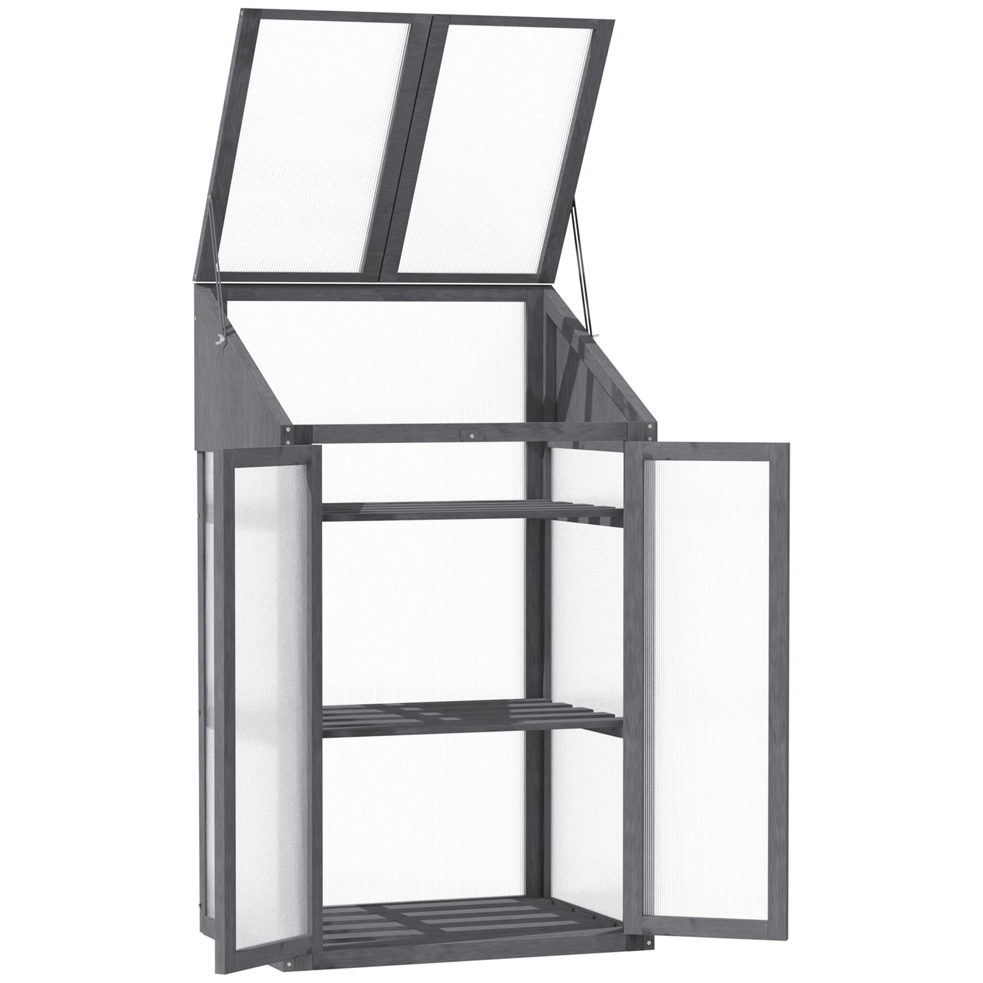 Wooden Cold Frame Polycarbonate Greenhouse with Openable Top Cover and Double Door