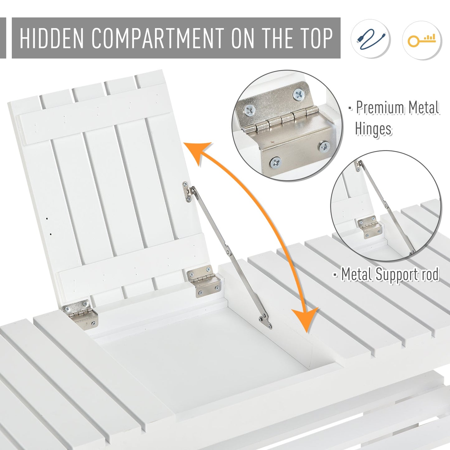 - Small hidden compartment on top shelf for concealed and handy storage